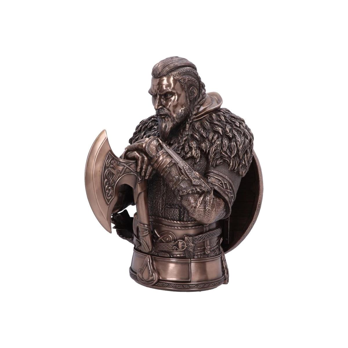 Show your unwavering appreciation for the fearless Viking raider Eivor with Nemesis Now's Officially Licensed Assassin's Creed Valhalla Bust Box in Bronze. Seen in his recognisable armour, Eivor holds his trustee axe between his hands, whilst staring foward, intimidating all those who pass by. At the back of the bust, Eivor's Raven Clan shield can be seen. While at the base, a drawer compartment, featuring the Assassin's Creed Valhalla logo can be found, which is perfect for keeping your most prized possessions safe from prying eyes. Cast in the finest resin before being expertly finished in Bronze, this Bust Box is the ideal addition to any Assassin's Creed collection.