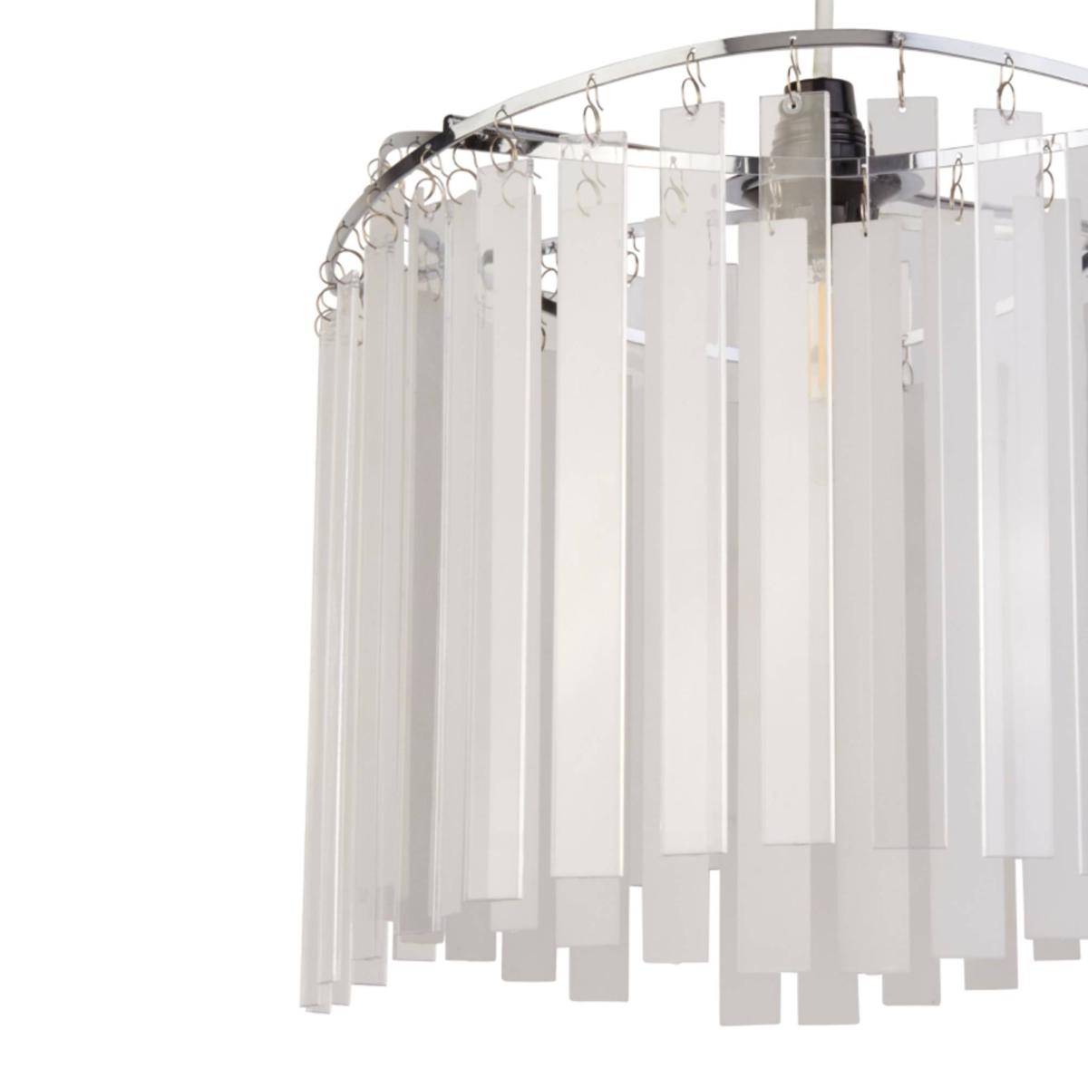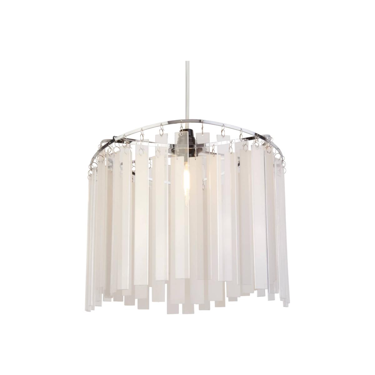 Contemporary pendant light shade with frosted hanging panels. A stunning addition to your home, the Assisi Pendant light shade is a modern fitting exclusive to Pagazzi. Boasting a polished chrome waved frame, this stylish ceiling shade is complete with hanging frosted panels, which will create soft and soothing light when lit. An easy fit pendant shade, it is ideal for updating your hallway, bedroom or living area.