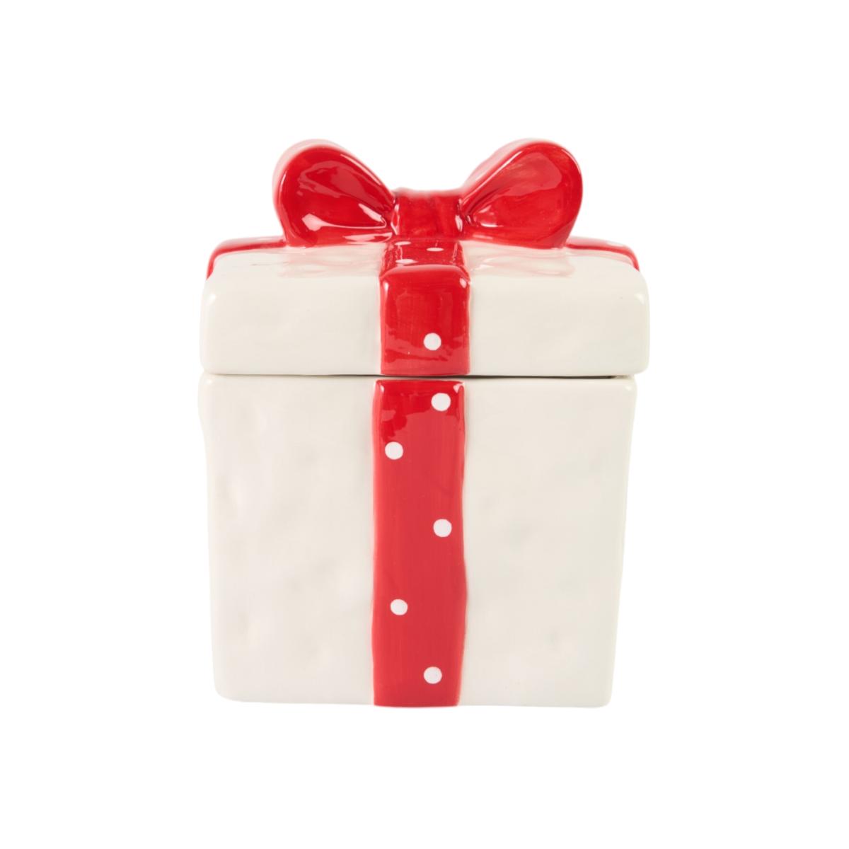 Enhance your home's ambience this holiday season with the Assorted Present Ceramic Candle. Available in assorted styles, this candle features a charming present-shaped jar adorned with ribbon details for a classic look. It releases an enchanting, spiced berry fragrance to create a cheerful and lively vibe in your home. Whether you place this candle in your living room or bedroom, it promises to cast a warm and magical glow in your space.