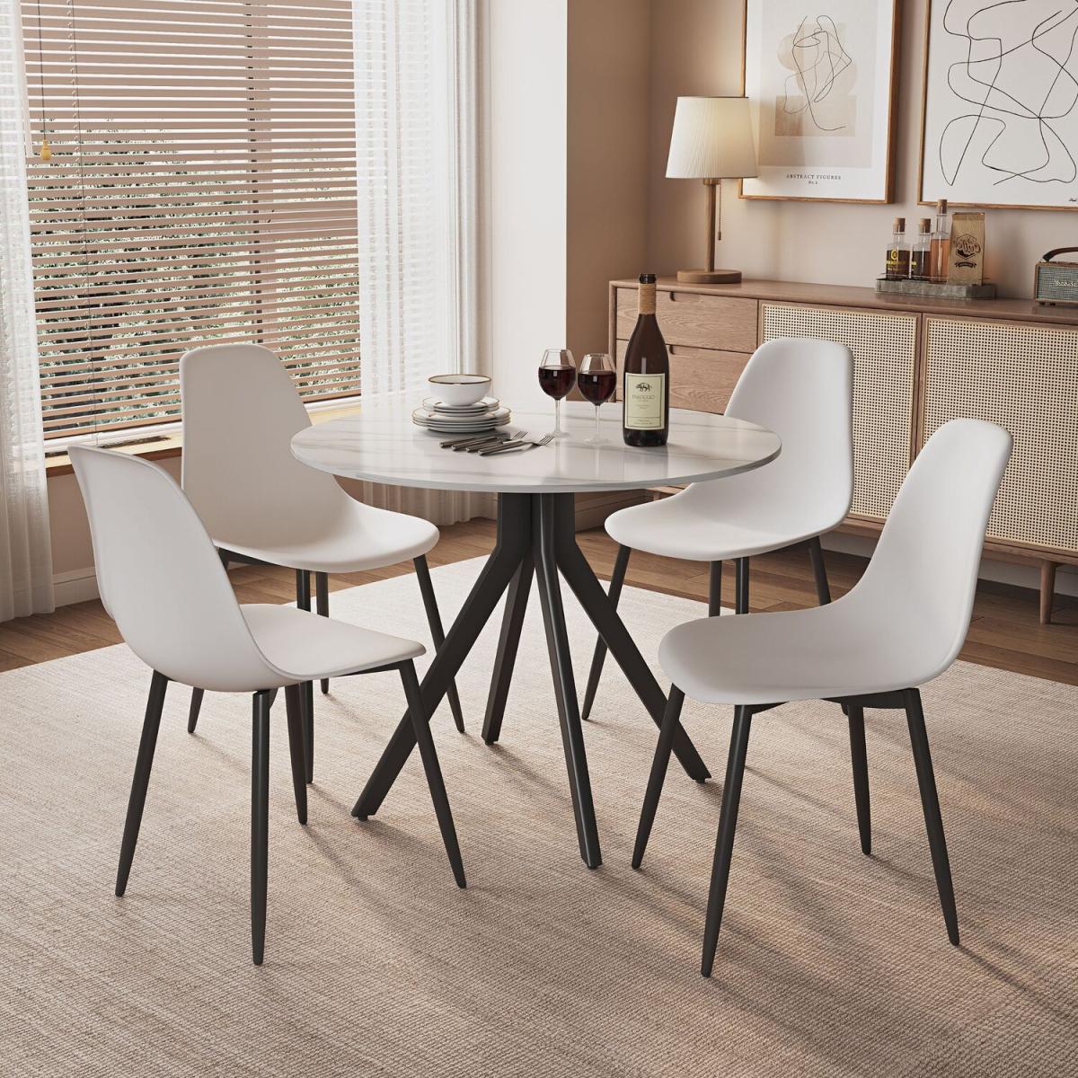 This dining set combines an Aspen Gloss White Sintered Stone Round Table with four curve chairs, offering a stylish and vibrant look. The glossy white table adds a sleek, modern touch, while the curve chairs bring a pop of color and comfort. Perfect for creating a lively and contemporary atmosphere in any dining area.