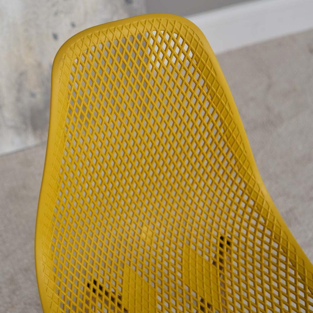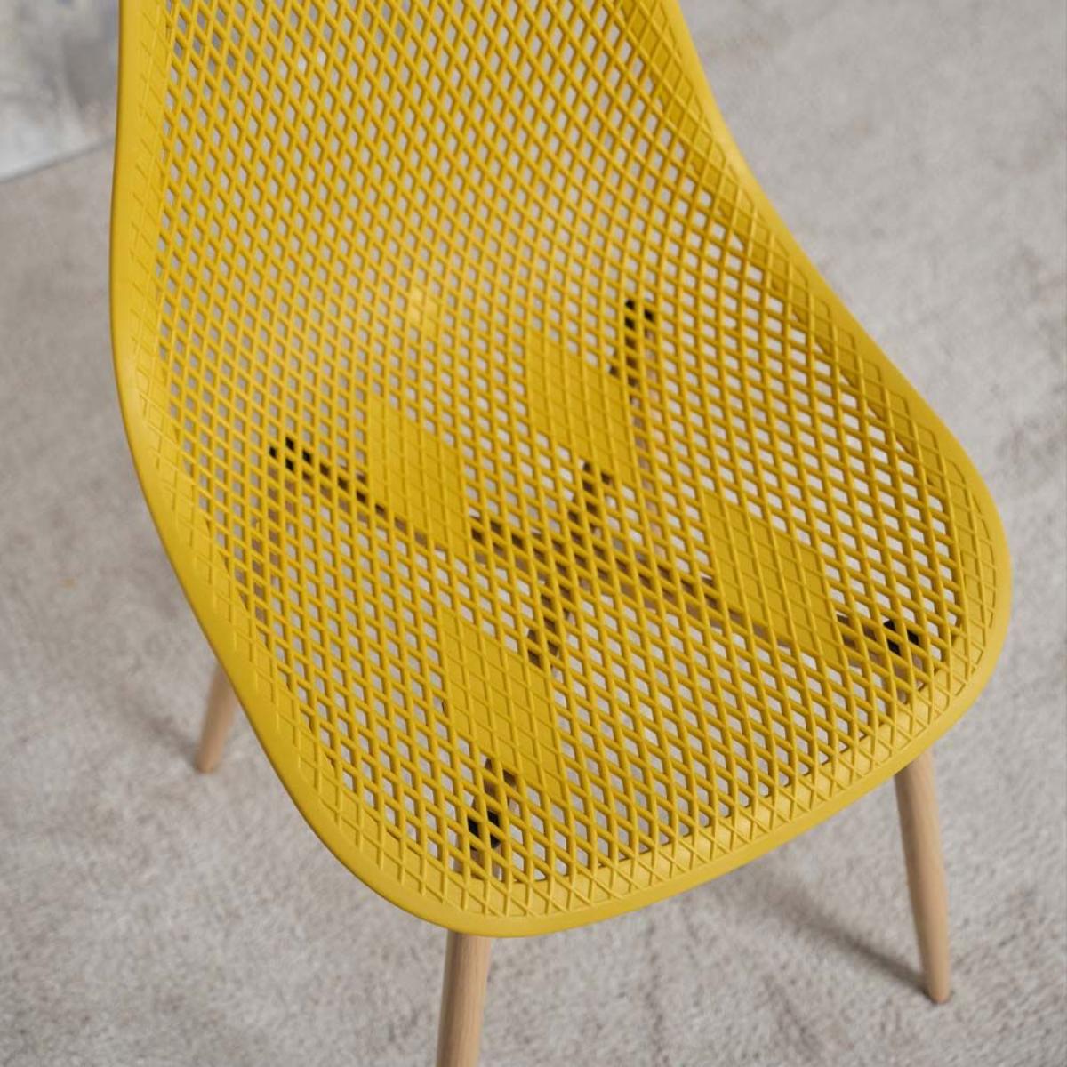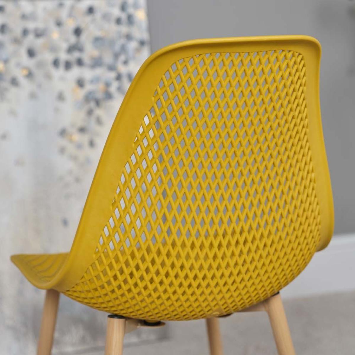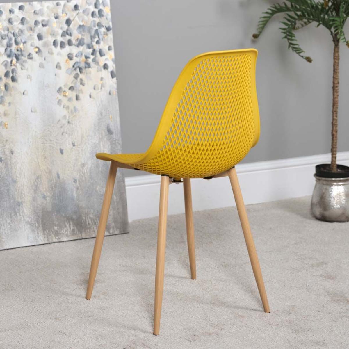 The Aster Dining Chair in yellow will add a stylish touch of colour to any dining setting. It can easily be added with other colours in the Aster range. Featuring a slightly bucketed moulded polypropylene seat for comfort. With modern faux oak wrap legs with metal internally for support. Metal legs with a faux oak wrap Moulded polypropylene seat. Sold as a pair. Simple Self Assembly. Dimensions: W44cm x D49cm x Seat Height: 47cm x Back Height 41cm