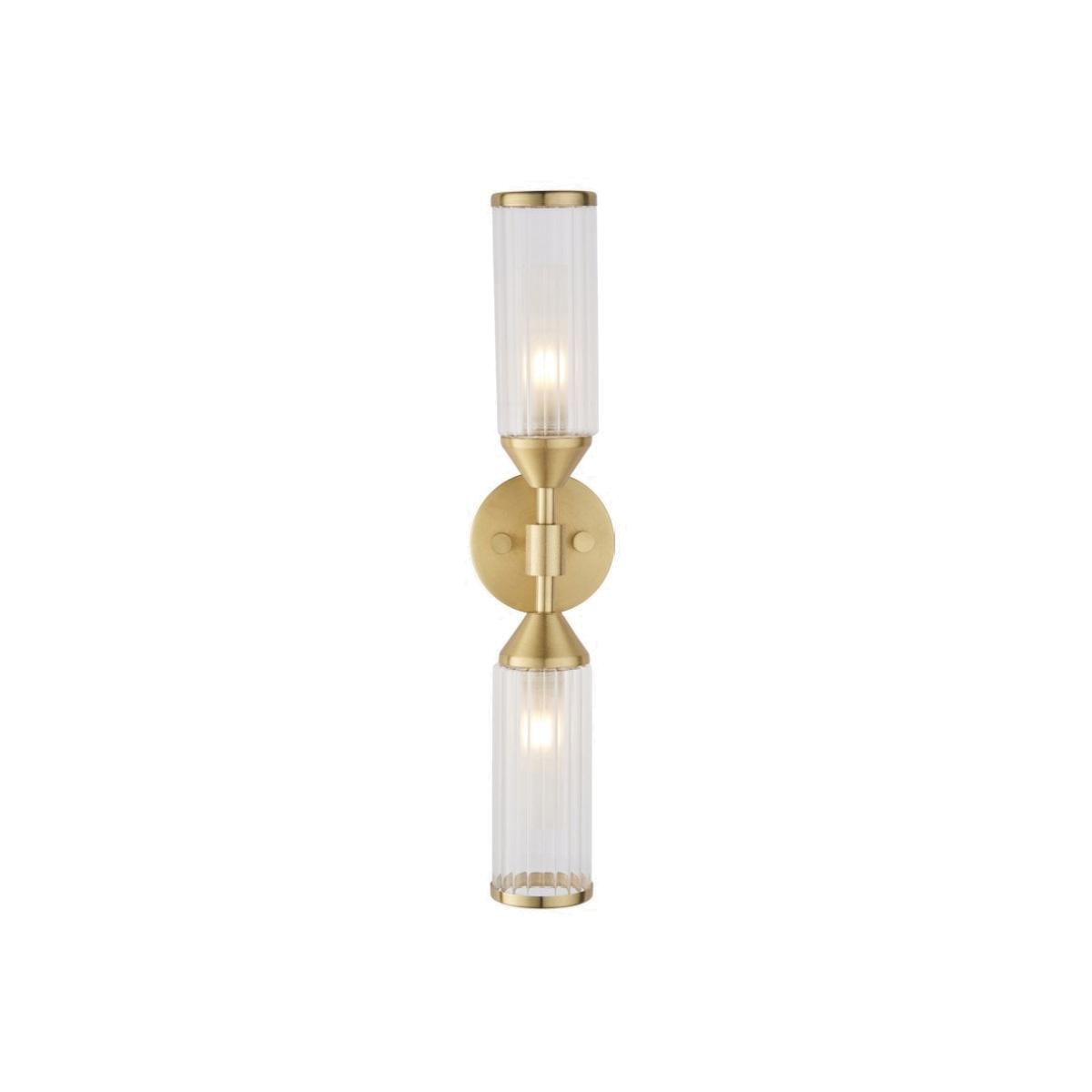I love this wall light because of its sleek combination of ribbed glass and polished brass, which adds a touch of elegance without being overly ornate. It works particularly well in interiors that blend modern and vintage elements-think mid-century inspired schemes or contemporary spaces with a hint of art deco. When styling, consider pairing it with minimalistic furniture to let the brass feature stand out, and place it in areas like hallways or above bedside tables for a warm, ambient glow. Practical tips include using a warm LED bulb to accentuate the soft texture of the glass and brass finish, ensuring the light remains both functional and stylish.