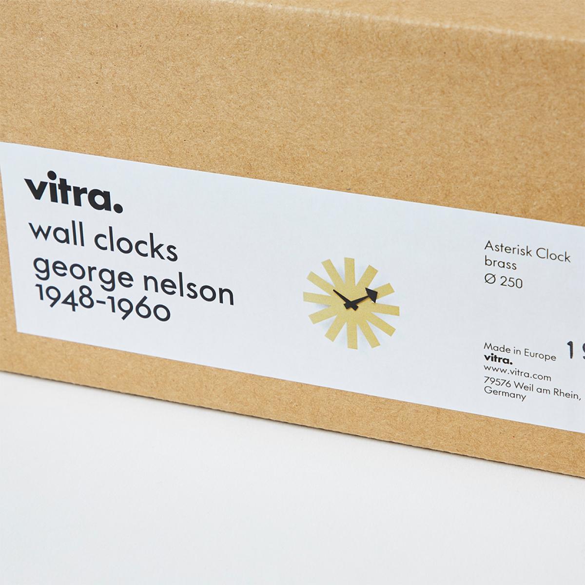 The extraordinary Asterisk Clock was designed by George Nelson for Vitra in 1948 and boasts a whimsical aesthetic throughout its contemporary form. Crafted entirely from brass, it's complete with a high-quality quartz movement. It makes a refreshing alternative to more traditional timepieces and will enliven any décor with its striking modernity. George Nelson was an American industrial designer and is considered one of the founders of American Modernism. He is renowned for his collaborations with Vitra and created many products that are now exemplary designs in their respective genres.