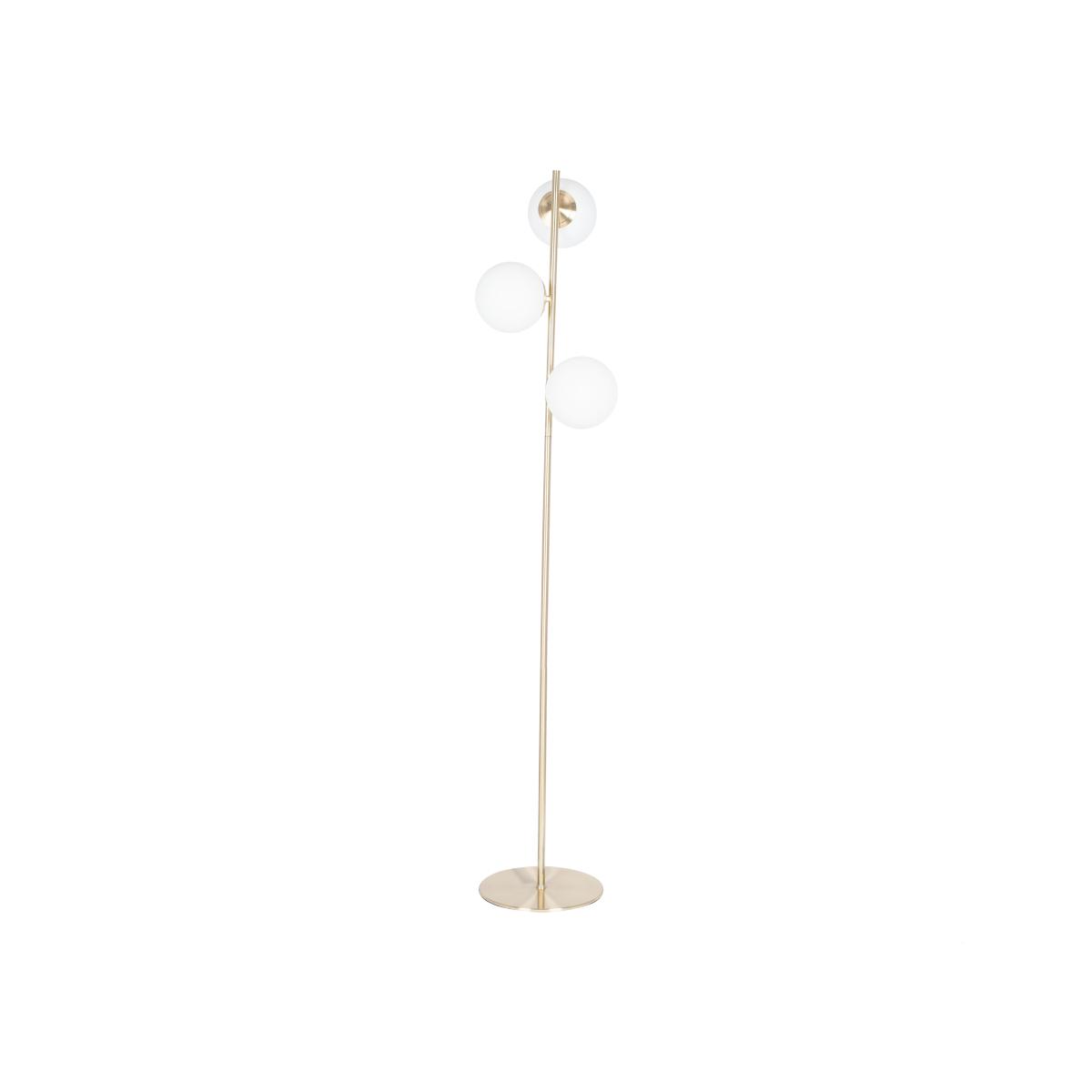 * Requires 3 x E27 Bulbs (Not included)* Contemporary floor lamp with white orb glass balls. * Gold metal construction for stylish look. * Available as both floor and table lamp. The Asterope White Orb and Gold Metal Floor Lamp brings contemporary elegance with its gold metal and three white orb glass balls design. Ideal for creating a stylish atmosphere, it adds a touch of sophistication to any room, also available as a table lamp.
