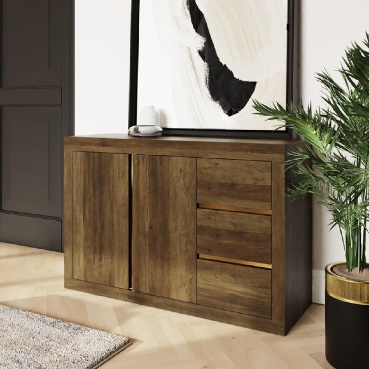 * Rubberwood frame * 2 door and 3 drawer storage * Knotty oak effect * Rustic style With its generous storage and rustic wood-effect finish, the Astley sideboard is a practical and stylish solution for keeping your home organised. Behind its doors and drawers lies ample space for everything from tableware to household essentials, all housed in a design that adds natural charm to any room.