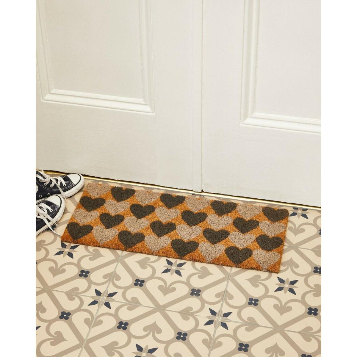 Astley Printed Step Mat with PVC Backing 25 x 60cm Hearts - Brown