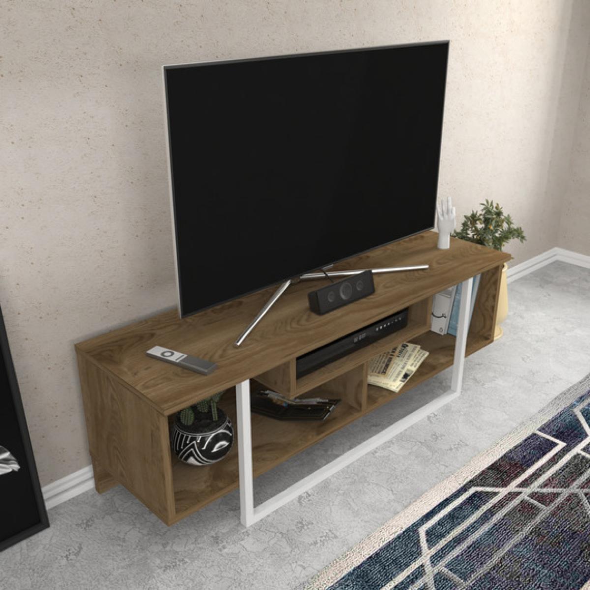 Asal simple and minimalist media stand for TVs up to 65" is defined by practical functionality and streamlined design. Top this design with a sleek flat-screen TV, then deck out the interior open shelves with your favorite books and DVDs, framed family photos, and hurricane candles, while using the middle shelf for your new video game console and the cable box. Reversible use that both front and back sides of the stand can be used as the front side interchangeably.