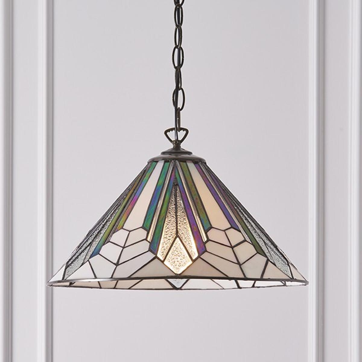 Astoria 1 Light Medium Ceiling Pendant Dark Bronze, Tiffany Style Glass, E27 - Dark Bronze