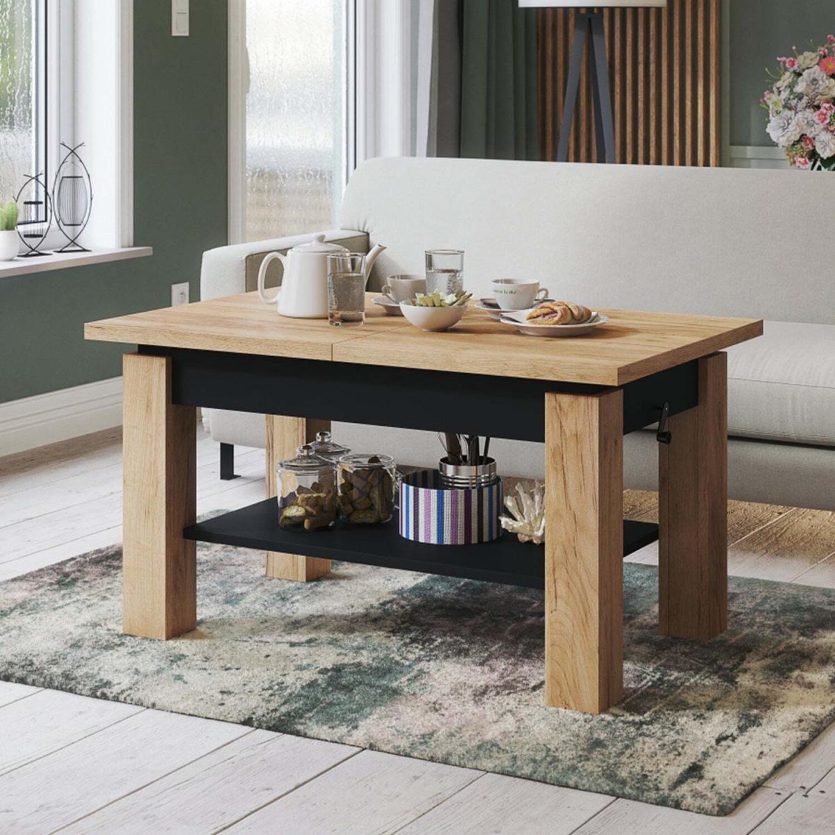 The Extending coffee table Astoria is a versatile and stylish addition to any living space. Crafted with exquisite attention to detail, this coffee table seamlessly combines functionality with modern design. Its sleek, minimalist silhouette enhances the aesthetic appeal of your home while providing ample storage and surface space. Featuring a unique extending mechanism, this coffee table effortlessly transforms from a compact size to a larger surface area, adapting to your specific needs. Whether you're hosting a gathering or simply enjoying a cozy evening in, the Astoria coffee table ensures convenience and versatility. Constructed from high-quality materials, this coffee table is built to last. Its sturdy frame and durable finish make it resistant to everyday wear and tear, ensuring long-lasting performance. The Astoria coffee table is designed to withstand the demands of daily use, making it an ideal investment for your home.