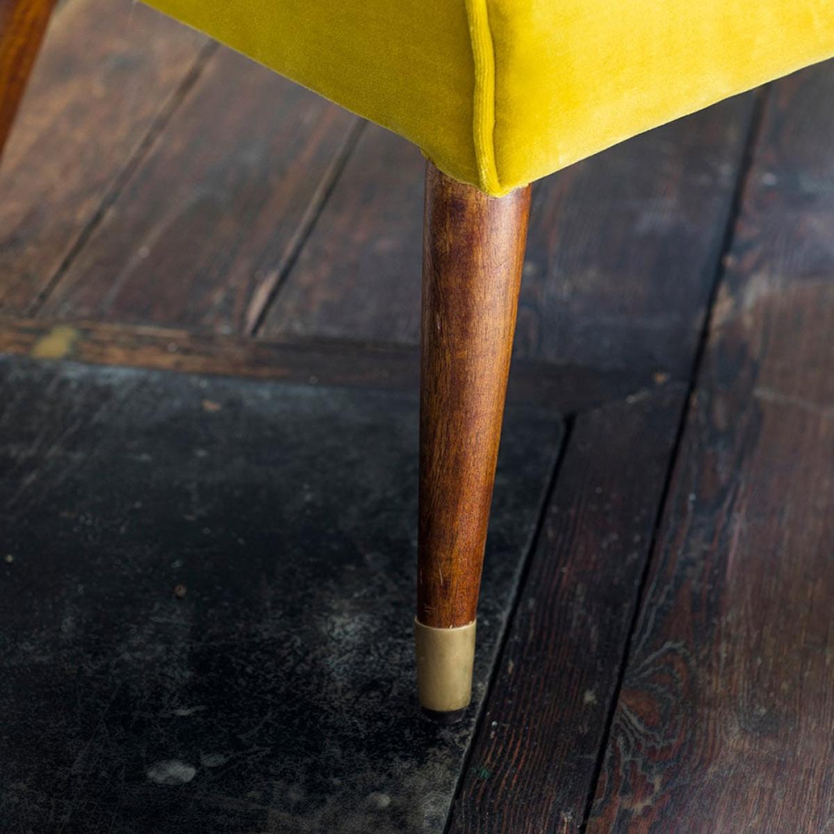 Sit back and relax in the sumptuous surroundings of our Astoria Armchair in Mustard Yellow Velvet. They can be used to complement or contrast any interior scheme and are delivered fully assembled with brass cups on the Coloniale finish wooden legs while the high-sided arms and wing-style seating offers plenty of space to snuggle up.
