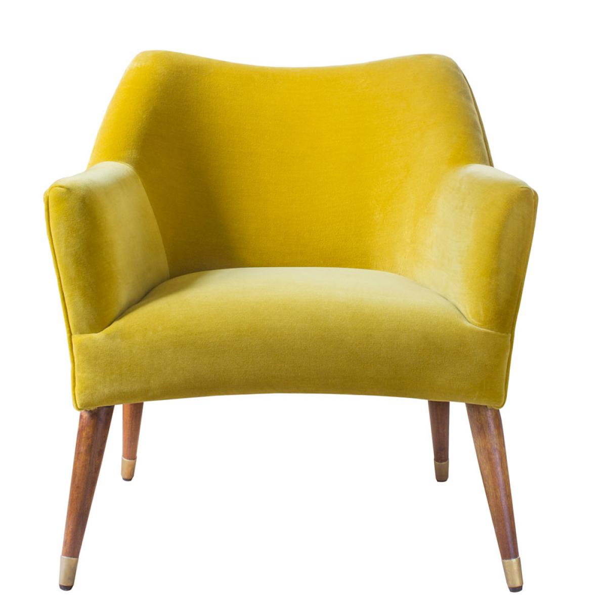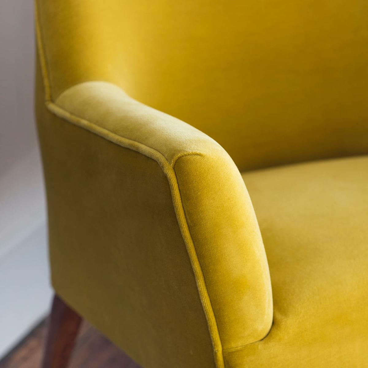 I’d choose this mustard velvet armchair for its bold yet versatile hue and elegant mid-century lines. It works equally well in a neutral Scandi-style living room - where it’ll act as a focal point against white walls and light timber floors - or in a darker, moodier library corner paired with deep blues or forest greens. To style it practically, drape a contrasting wool throw over one arm and position a small side table next to it for books or a coffee. A sculptural floor lamp behind will highlight the velvet texture and make your reading nook feel complete.