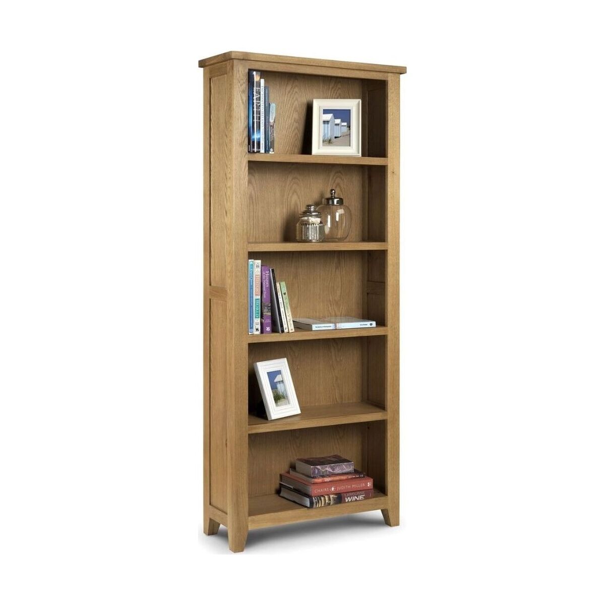 The Astoria Tall Bookcase is a striking and traditionally styled addition to any room of your home. Bringing versatile shelving for your reading materials, ornaments and more, this beautifully crafted bookcase ensures elegance wherever it is placed. Wide legs and edging to the shelves create a warm traditional finish which lends itself to many styles of interior. Quality waxed oak construction. Five spacious shelves for storage and display. Each shelf height allows for storage of an A4 box file or similar height item. Coordinates perfectly with other pieces in the Julian Bowen Astoria range.