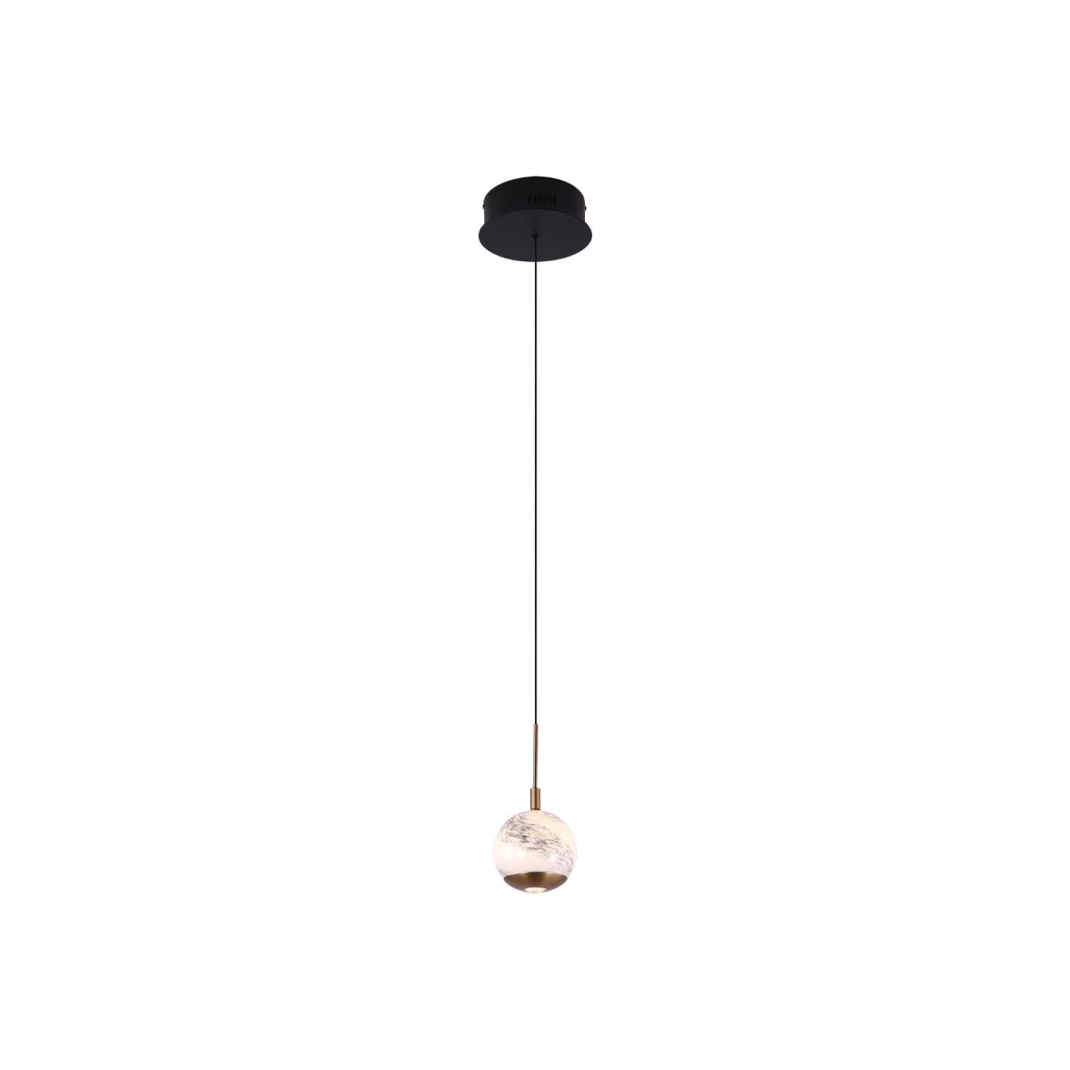 Astrid 1-light LED ceiling pendant, featuring a white, marble-effect spherical glass pendant, with satin brass accents and a matte black ceiling fixture The Astrid 1-light ceiling pendant offers a sleek and refined look, perfect for adding a touch of modern elegance to any room. Featuring a white, marble-effect pendant, this light exudes understated luxury. The marble pattern adds depth and texture, while the satin brass accents introduce a subtle metallic shine that contrasts beautifully with the matte black ceiling fixture. Ideal for spaces like bedrooms or living areas, or grouped in multiples over kitchen islands, this pendant creates a soft, ambient glow thanks to its integrated LED technology. The Astrid's minimalist design and luxurious materials make it a versatile lighting option, adding sophistication to both contemporary and classic interiors. Astrid 1-light LED ceiling pendant, featuring a white, marble-effect spherical glass pendant, with satin brass accents and a matte black ceiling fixture The Astrid 1-light ceiling pendant offers a sleek and refined look, perfect for adding a touch of modern elegance to any room. Featuring a white, marble-effect pendant, this light exudes understated luxury. The marble pattern adds depth and texture, while the satin brass accents introduce a subtle metallic shine that contrasts beautifully with the matte black ceiling fixture. Ideal for spaces like bedrooms or living areas, or grouped in multiples over kitchen islands, this pendant creates a soft, ambient glow thanks to its integrated LED technology. The Astrid's minimalist design and luxurious materials make it a versatile lighting option, adding sophistication to both contemporary and classic interiors.