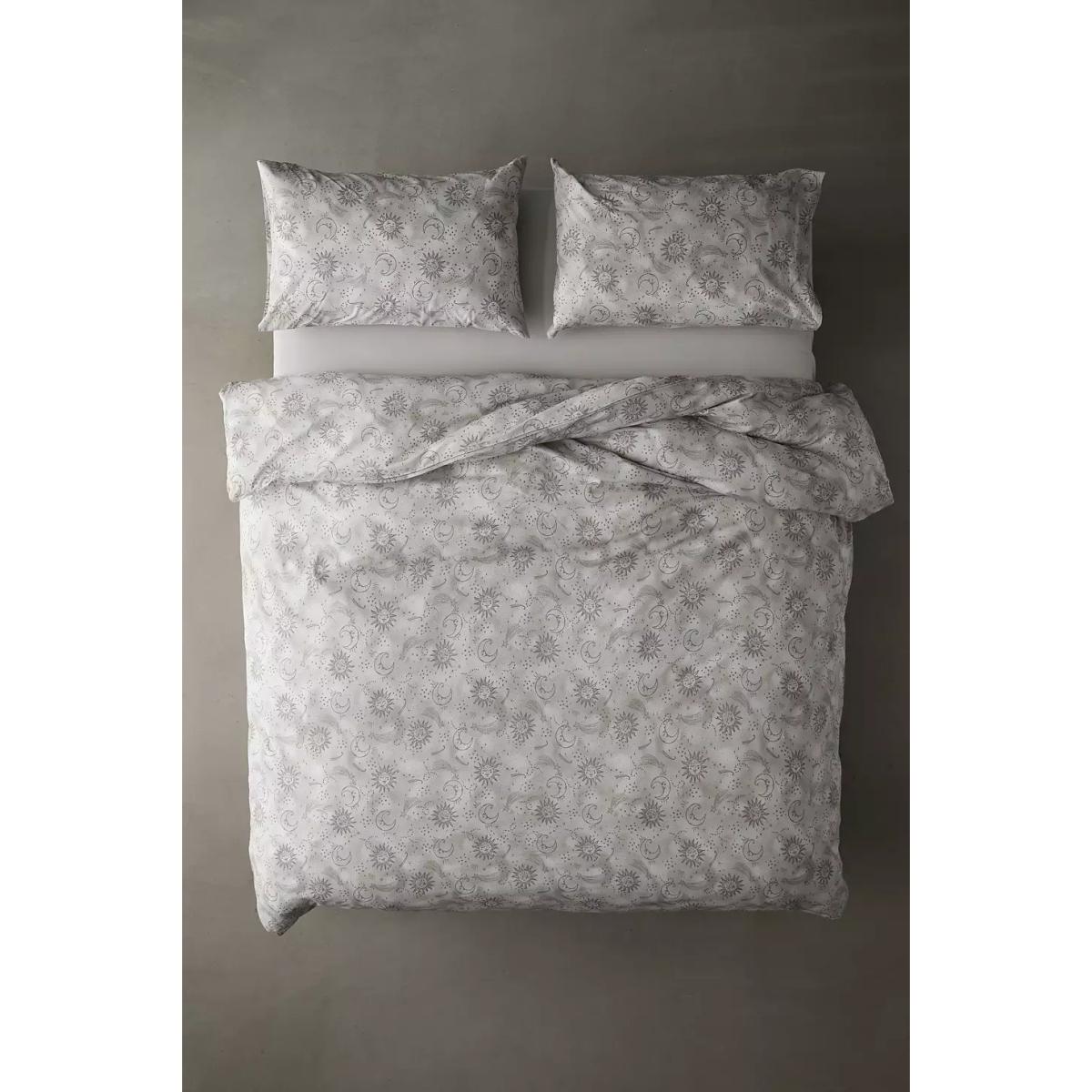 Channel energy of the sun and moon into your space with this monochrome duvet set. Celestial print covers these matching pillowcases and duvet set crafted from a soft cotton fabrication. **About Better Cotton** \- By choosing our cotton products, you’re supporting our investment in Better Cotton’s mission \- This product is sourced via a system of mass balance and therefore may not contain Better Cotton \- Bettercotton.org/massbalance **Content + Care** \- 100% Cotton \- Machine wash **Size** \- Single (includes 1 pillowcase): 135cm (W) x 200cm (H) \- Double (includes 2 pillowcases): 200cm (W) x 200cm (H) \- King (includes 2 pillowcases): 230cm (W) x 220cm (H) \- Pillowcase: 75cm x 50cm