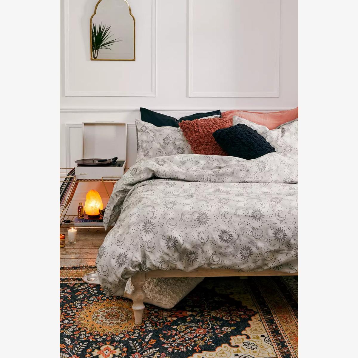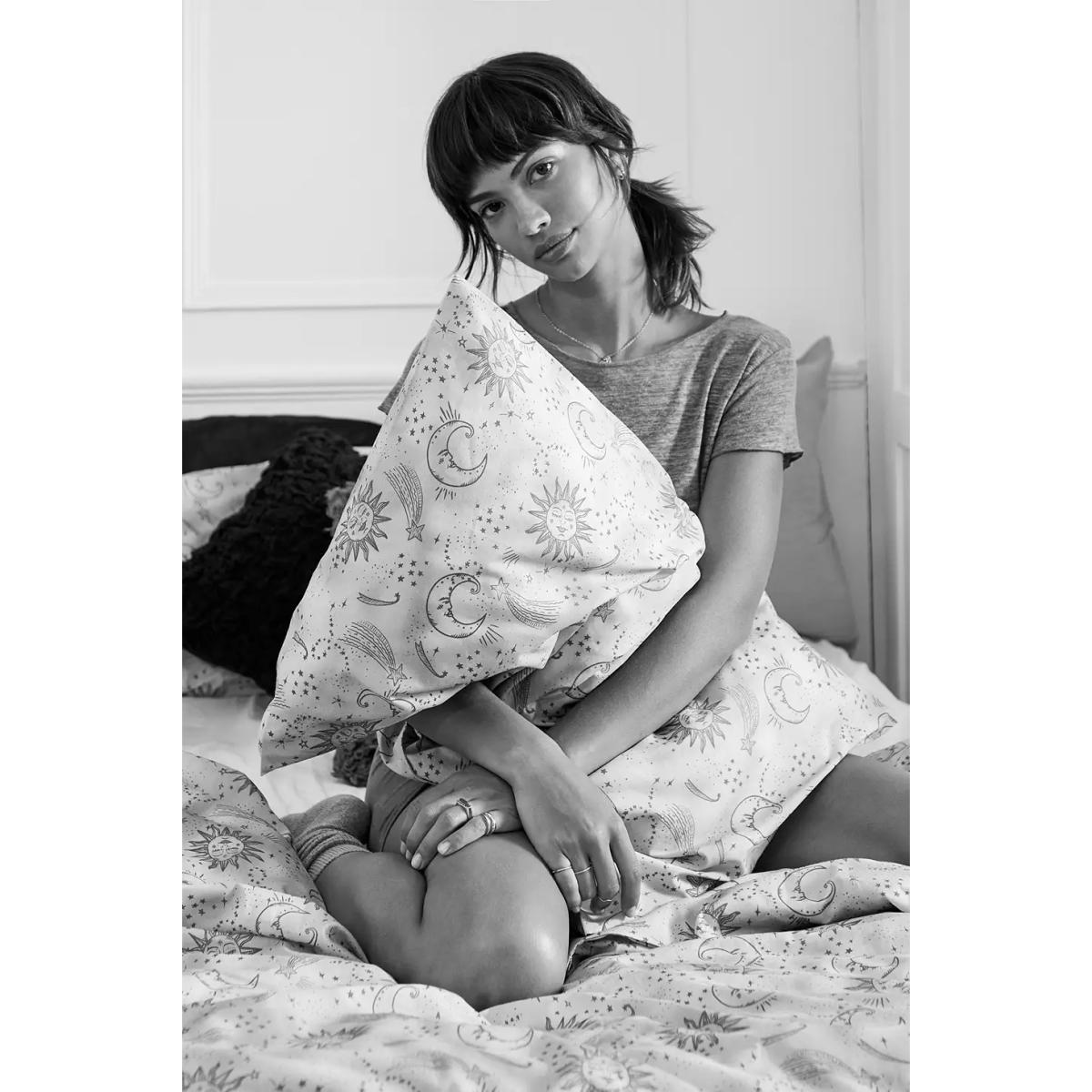 Channel energy of the sun and moon into your space with this monochrome duvet set. Celestial print covers these matching pillowcases and duvet set crafted from a soft cotton fabrication. **About Better Cotton** \- By choosing our cotton products, you’re supporting our investment in Better Cotton’s mission \- This product is sourced via a system of mass balance and therefore may not contain Better Cotton \- Bettercotton.org/massbalance **Content + Care** \- 100% Cotton \- Machine wash **Size** \- Single (includes 1 pillowcase): 135cm (W) x 200cm (H) \- Double (includes 2 pillowcases): 200cm (W) x 200cm (H) \- King (includes 2 pillowcases): 230cm (W) x 220cm (H) \- Pillowcase: 75cm x 50cm