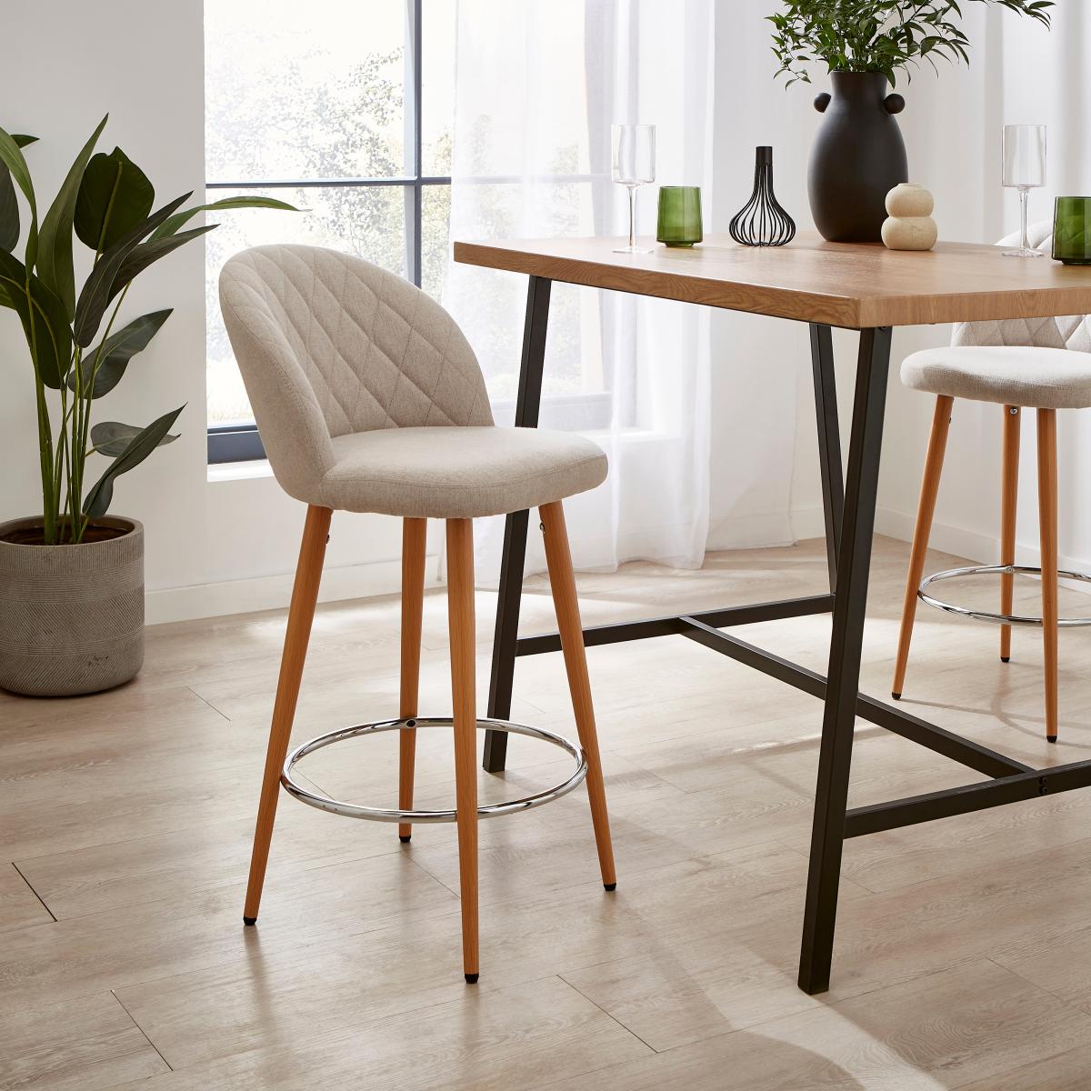 I’m a big fan of the Astrid stool for its clean lines and softly quilted fabric - it instantly adds a relaxed yet refined feel to any casual dining spot. The natural linen-look upholstery and light timber legs make it a perfect fit in Scandi-inspired kitchens, modern farmhouses or any neutral, pared-back scheme. For styling, try pairing two or three along a timber or metal-framed breakfast bar, then introduce contrast with darker cabinetry or a matte black pendant light. A simple linen runner or jute rug underneath can help define the seating area, while a few green sprigs in a stone vase will bring warmth and a touch of personality.