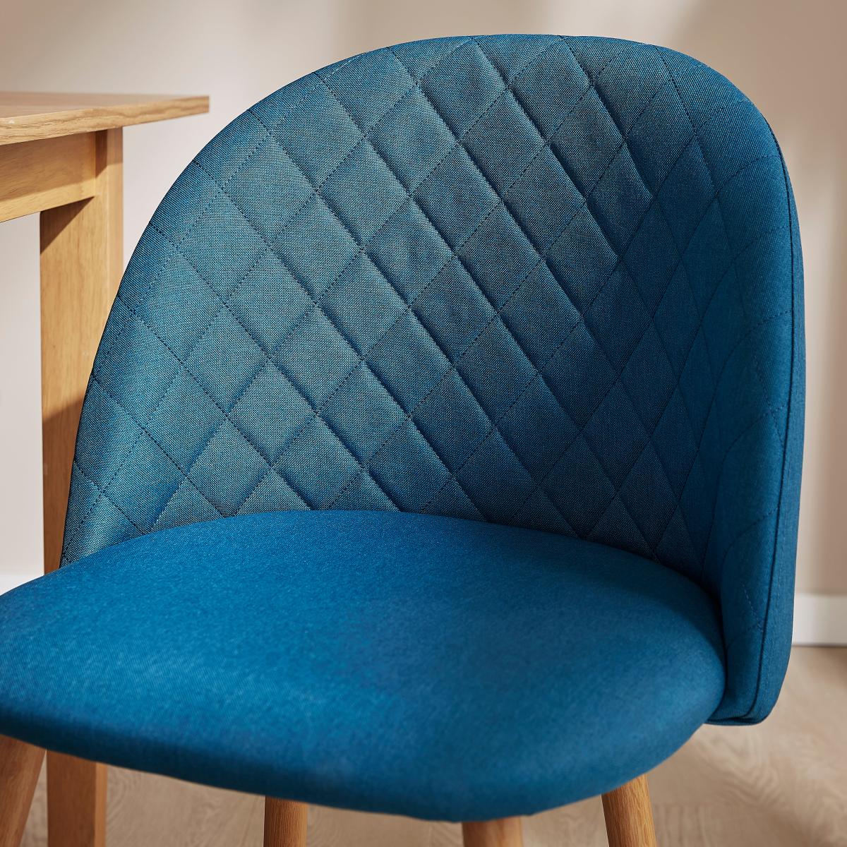 I love this chair's modern yet cosy vibe, making it a versatile choice for both contemporary and retro-inspired interiors. The teal flatweave fabric adds a pop of colour without overwhelming a space, and the quilted back detail offers subtle texture. It works particularly well in open-plan kitchens or dining rooms with light wood furniture, but can also bring a lively touch to more neutral schemes. Practical styling tips include pairing it with natural wood or metallic accents for a balanced look, and mixing it with different styles of chairs around a dining table to create an eclectic, cosy atmosphere. Its slimline profile also makes it ideal for smaller spaces where you want comfort without bulk.