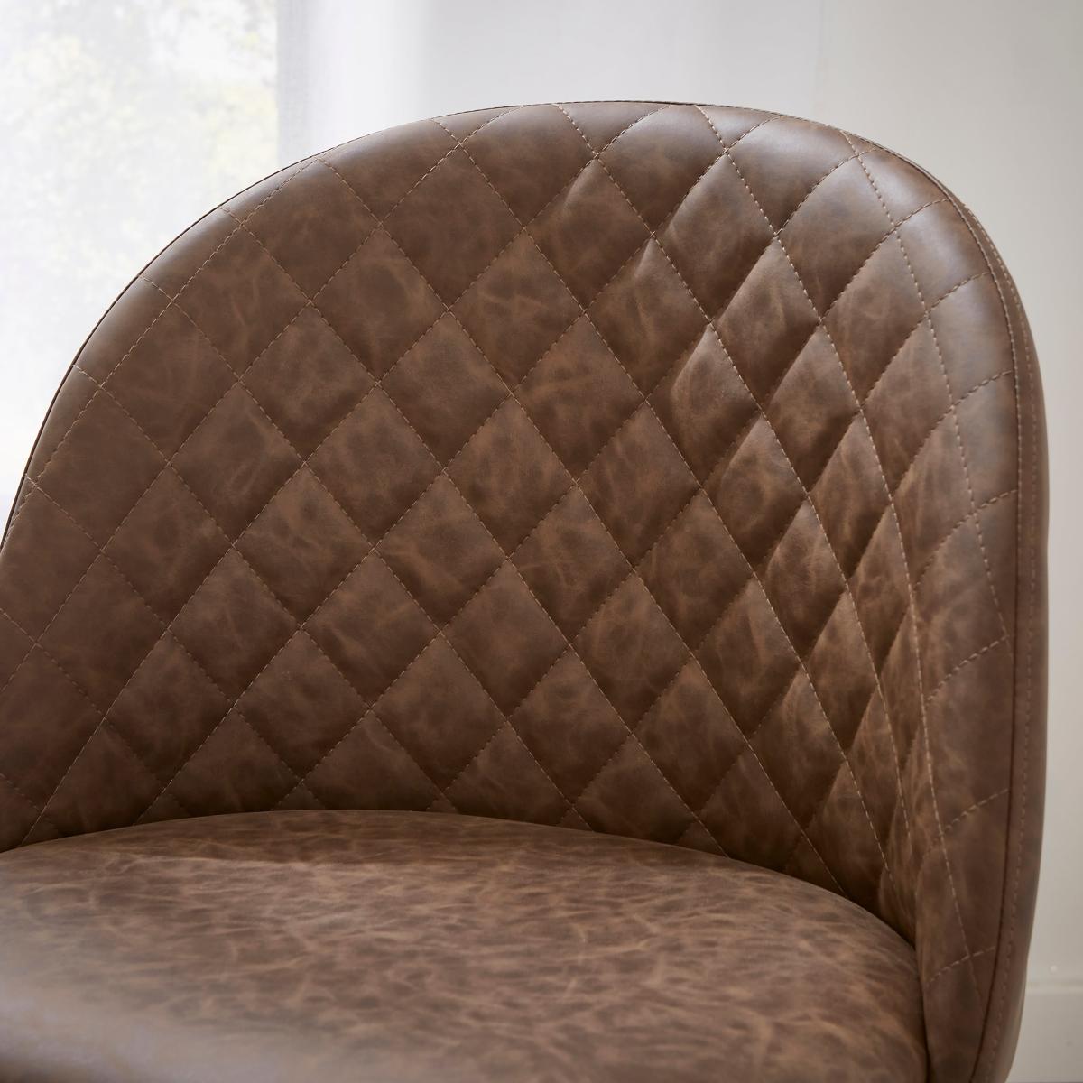 * Modern dining chair* Faux leather upholstery* Foam filled cushions* Part assembly required Elevate your dining experience with this stunning chair. Combining modern design, quilted detailing and foam-filled comfort, this chair embodies luxury and style. The chair features a sleek and sophisticated faux leather upholstery, exuding a timeless appeal that effortlessly complements any interior decor. The tall back offers excellent lumbar support, allowing you to sit comfortably during long meals and engaging conversations. Whether you're hosting a dinner party or enjoying a quiet family dinner, this chair ensures you can indulge in hours of comfort without compromise. The quilted detailing showcases fine craftsmanship and adds an extra layer of sophistication to the overall design, making it a true centrepiece of your dining ensemble. Its sleek design is perfect for contemporary interiors, adding a touch of sophistication to your dining space.