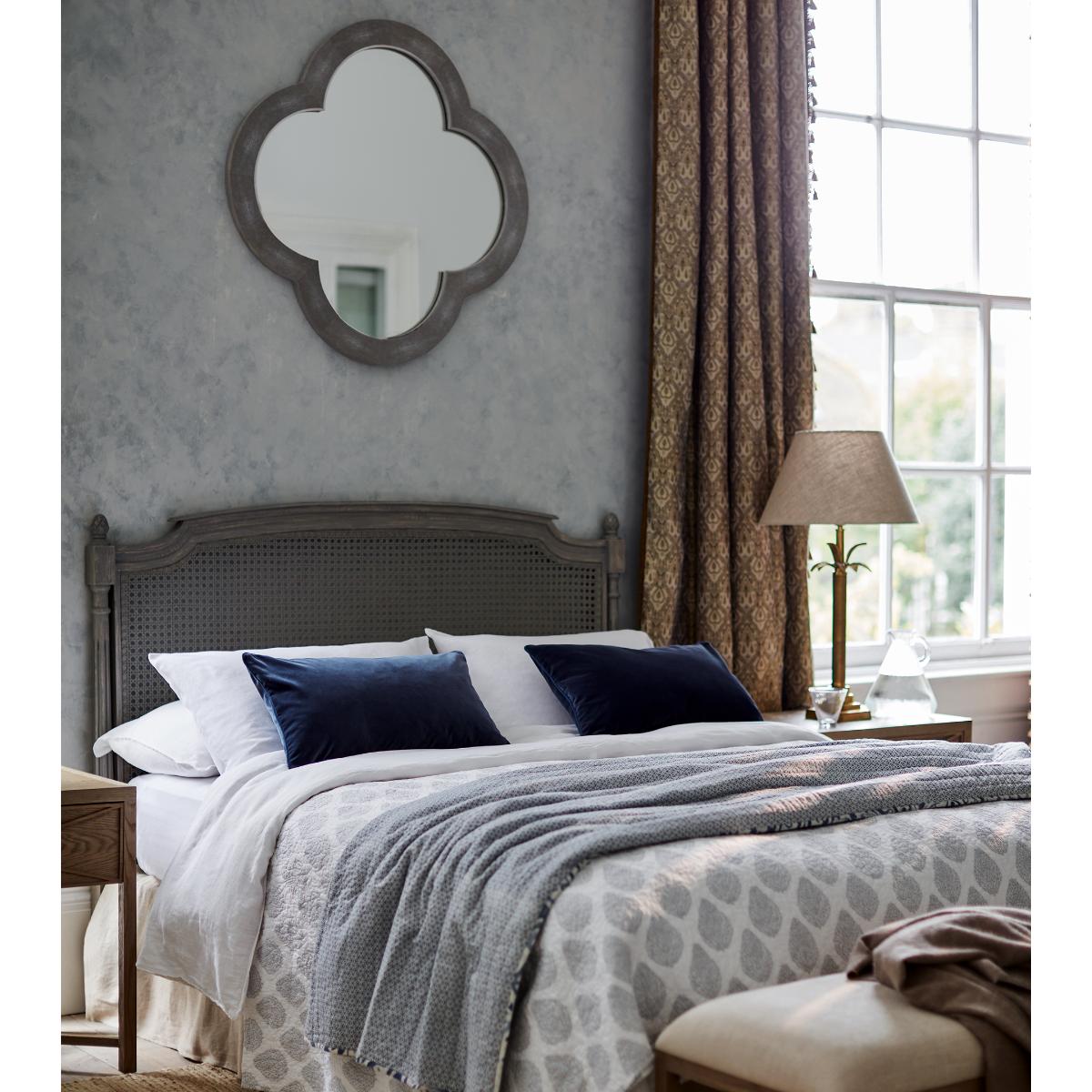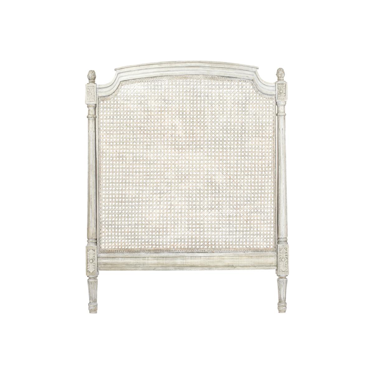 Restrained Scandinavian styling makes this headboard an alternative to more traditional upholstered designs. With its muted flannel-grey finish, this carved and caned headboard provides a quick update for a single divan bed, with no fixing required - simply stand the headboard between the bed and the wall. Astrid Headboard, Single - Flannel Grey
