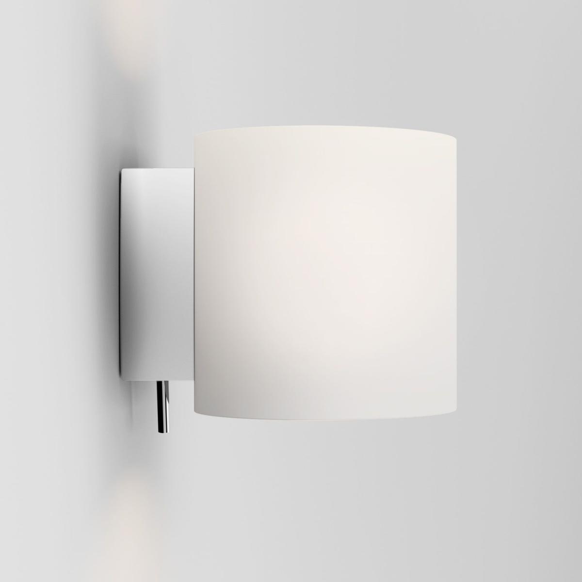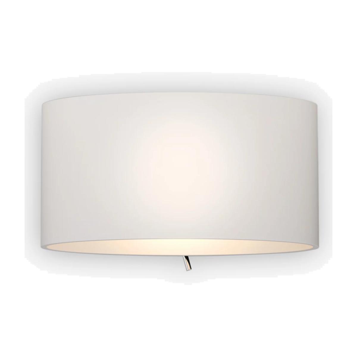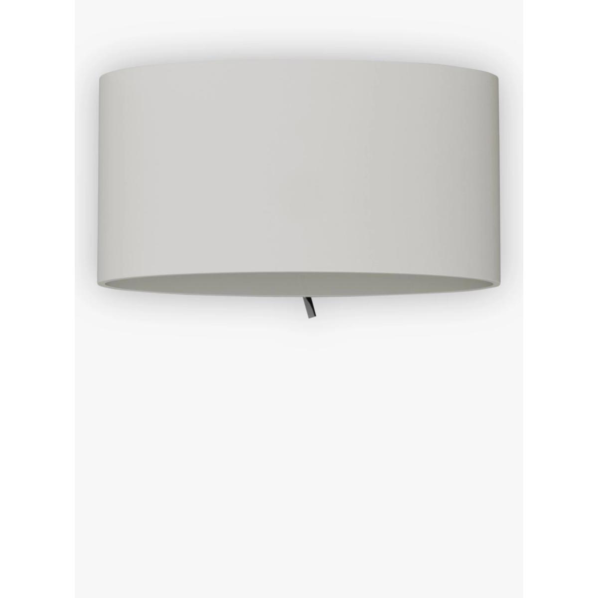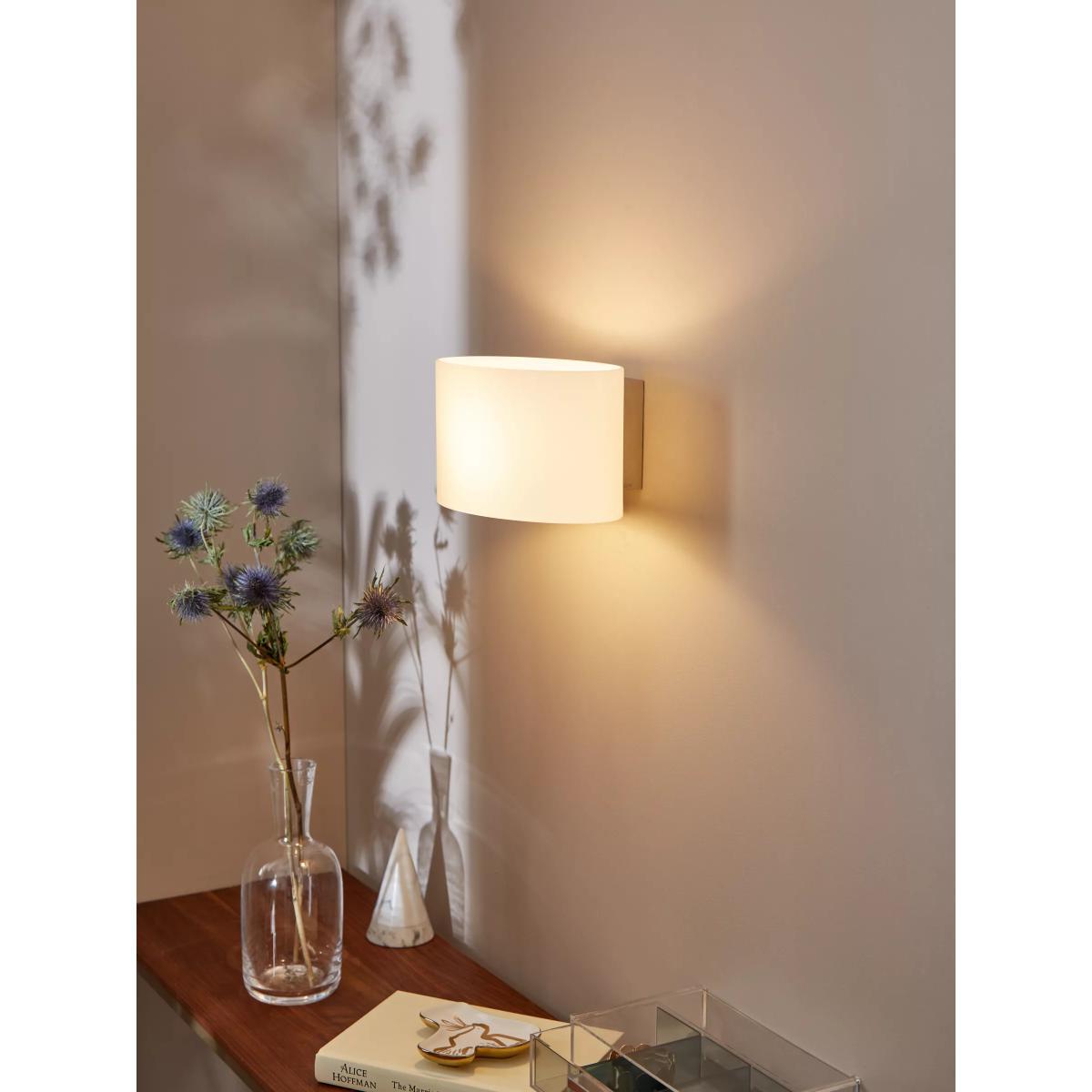 A simple, opal glass wall light in the shape of a flattened ellipse.
