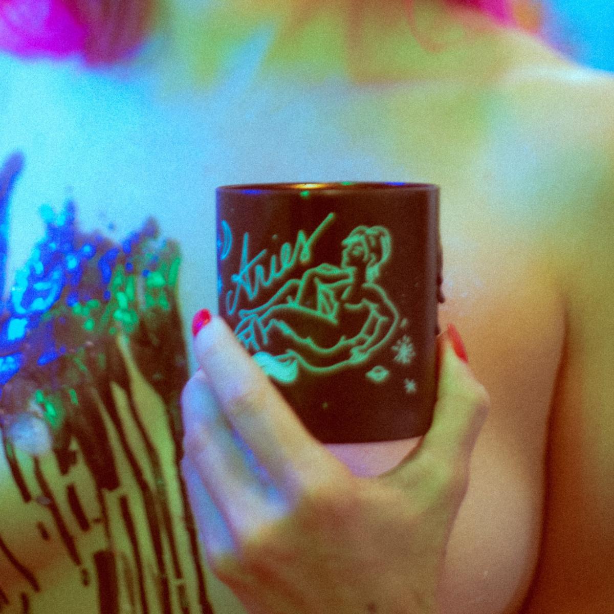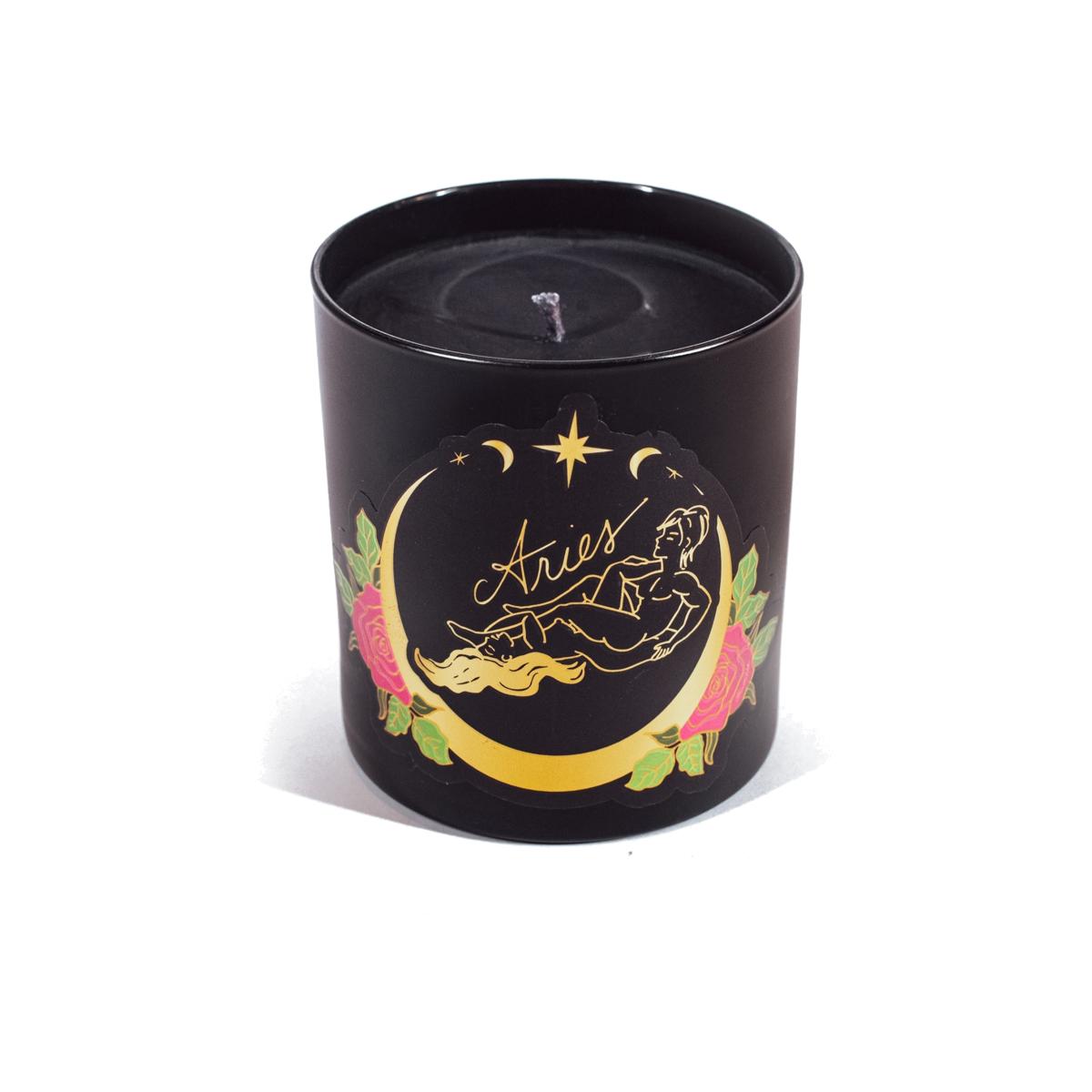 Black Cake's Zodiac Sex Massage Candles are a combination of coconut and soy wax, natural oils, and sugar rose petal floral notes poured into a beautifully hand illustrated glass cylinder that radiates sensuality and epitomizes seductive elegance. Erika hand drew the illustrations that adorn each sexy massage wax candle making her candles an original piece of artwork. Each Zodiac Sex Massage Candle reveals a sex position that fits your astrological sign's unique sexy personality. Aries like it straight and to-the-point. It isn't that the Aries doesn't have a touch of romance, because they do, they just like to get what they want when they want it. Hand poured in Los Angeles, California USA