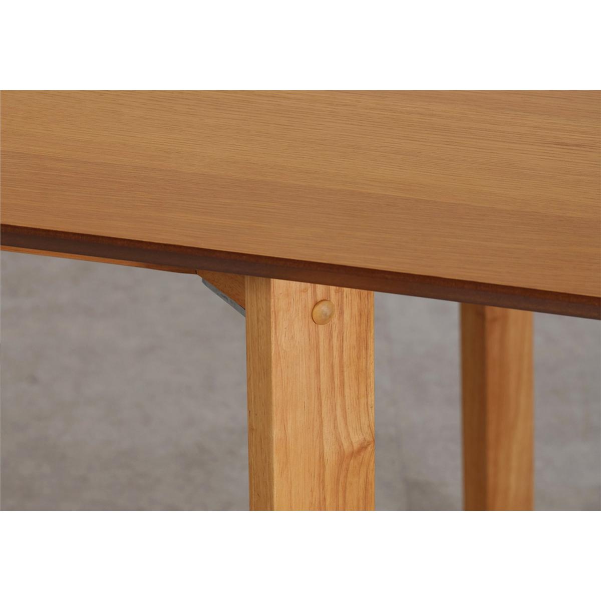 The Asuna dining table is a stunning and practical choice for gatherings with loved ones. With its generous size, seating up to 8 people, it provides ample space for comfortable dining. Its design elements, such as slim legs and rounded edges, create stylish retro look. The oak veneer top with a warm finish adds a touch of natural beauty, making it suitable for various interior styles. The table boasts a solid rubber wood frame and legs. Rubber wood is known for its durability and strength. The Asuna dining table combines a modern retro aesthetic, functionality, and durability. It is an excellent choice for creating memorable moments with family and friends.