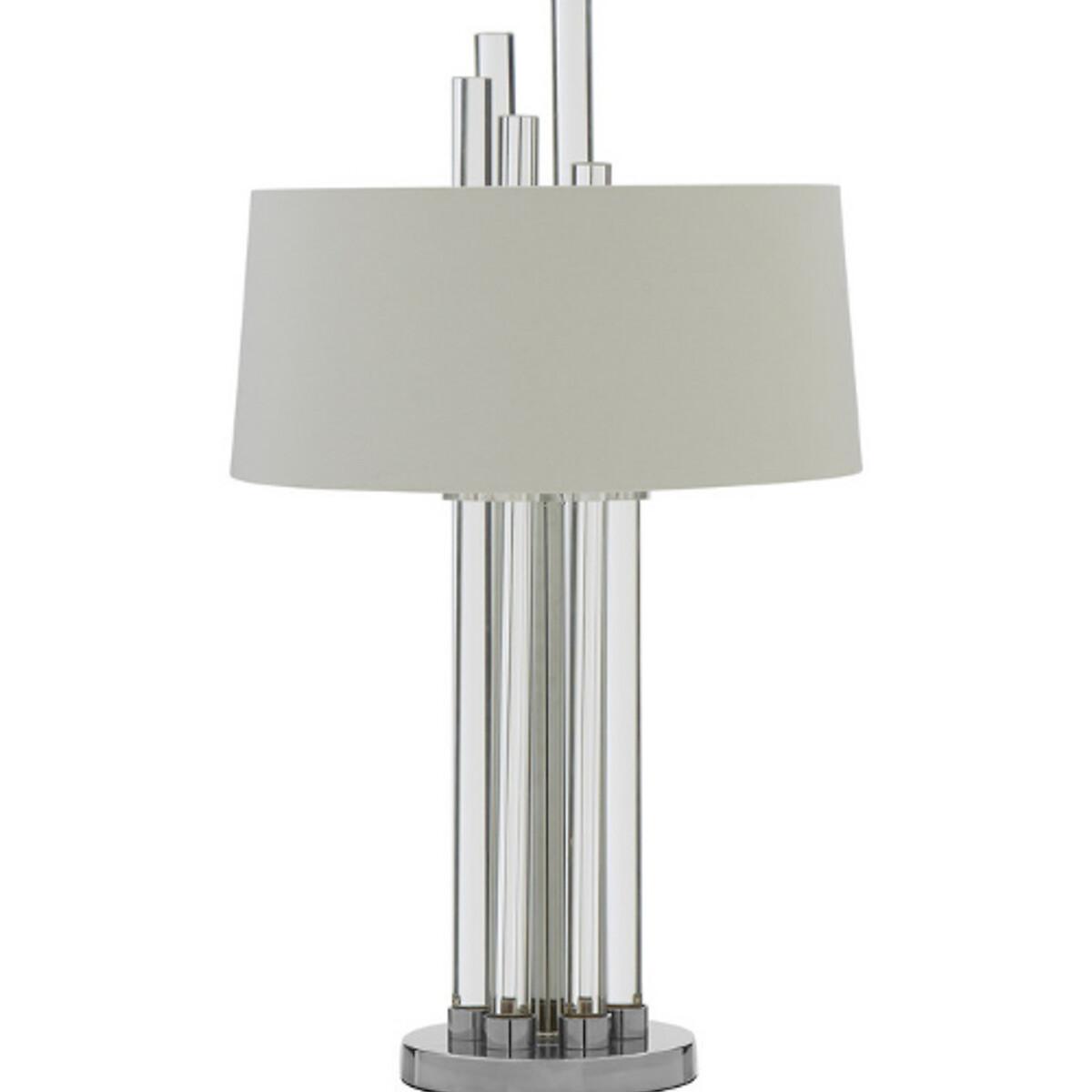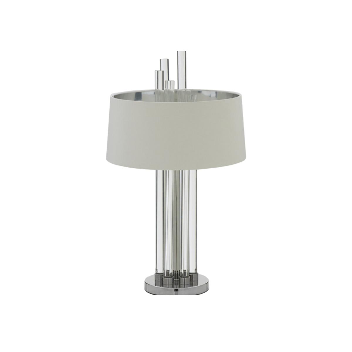 Asymmetric Glass and Silver Base with Linen Shade Table Lamp