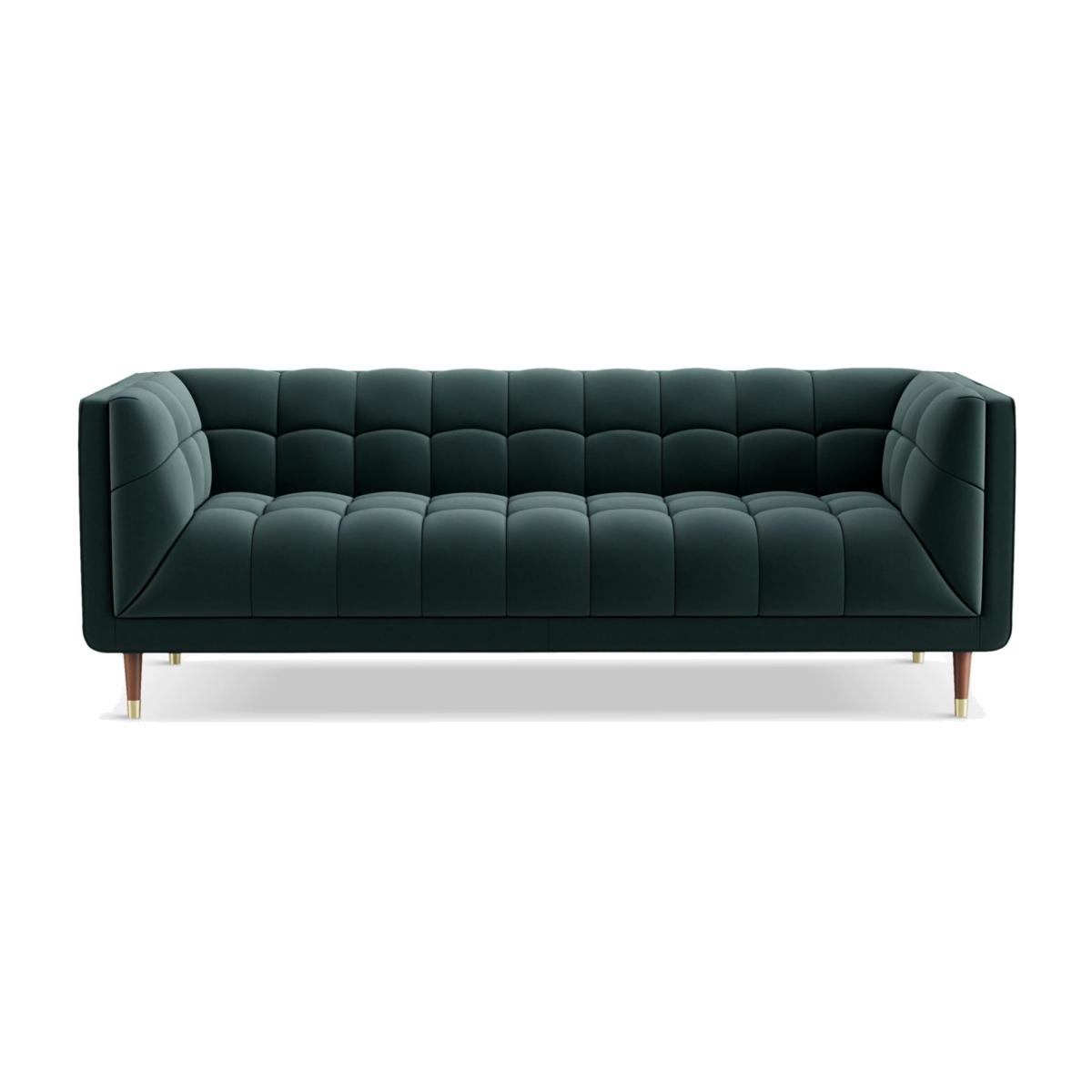 I’m a big fan of the Grace Grand sofa for its clean lines and deep, tufted upholstery - it instantly anchors both contemporary and mid-century modern rooms. Its generous scale suits open-plan living, while the rich green velvet works particularly well against soft neutral walls or pared-back wallpapers. To style it, balance the bold hue with slim-legged side tables in brass or matte black, add two contrasting scatter cushions in linen or boucle, and layer a low-pile rug beneath to define the seating area. Finish with a sculptural floor lamp and a couple of leafy plants for a lived-in yet polished look.