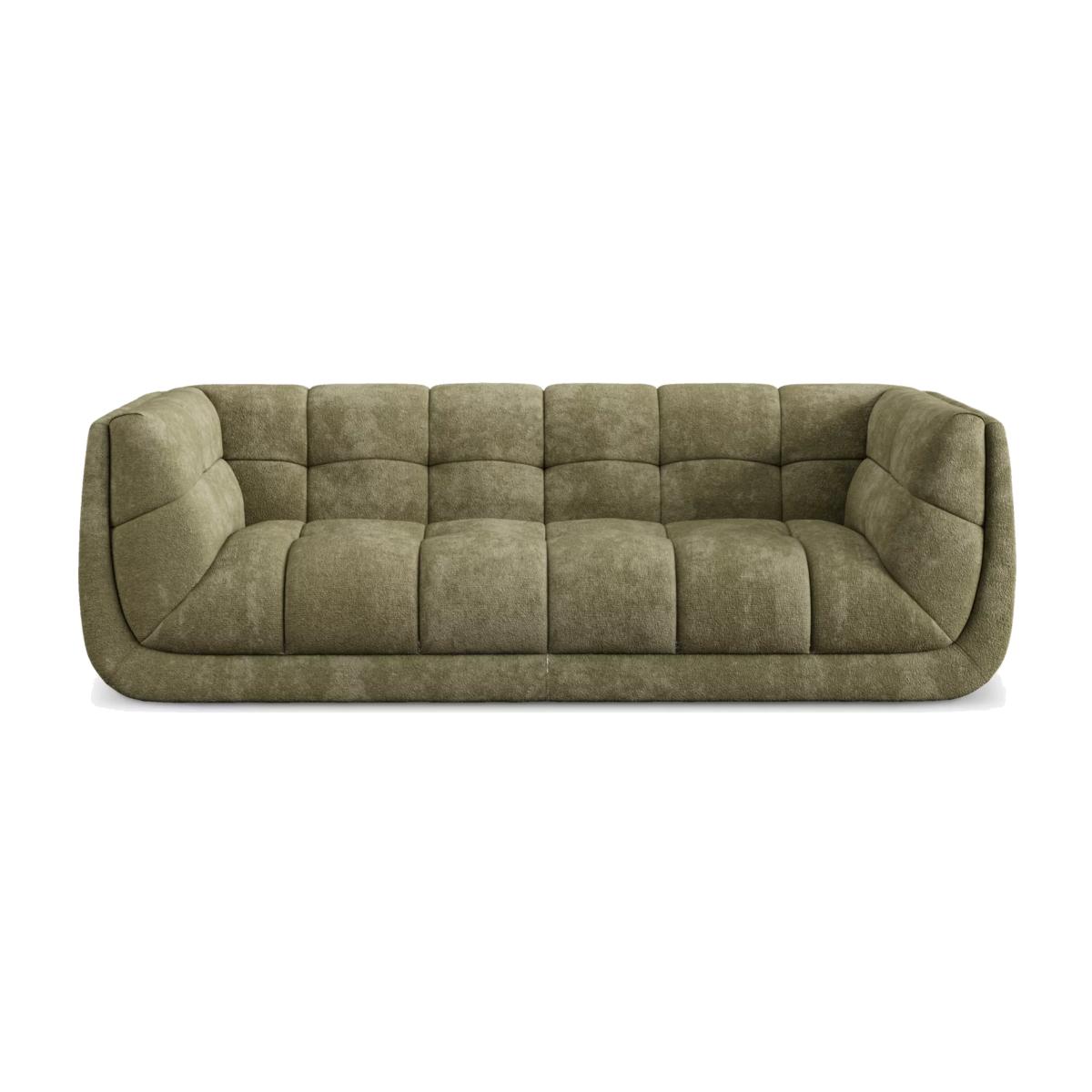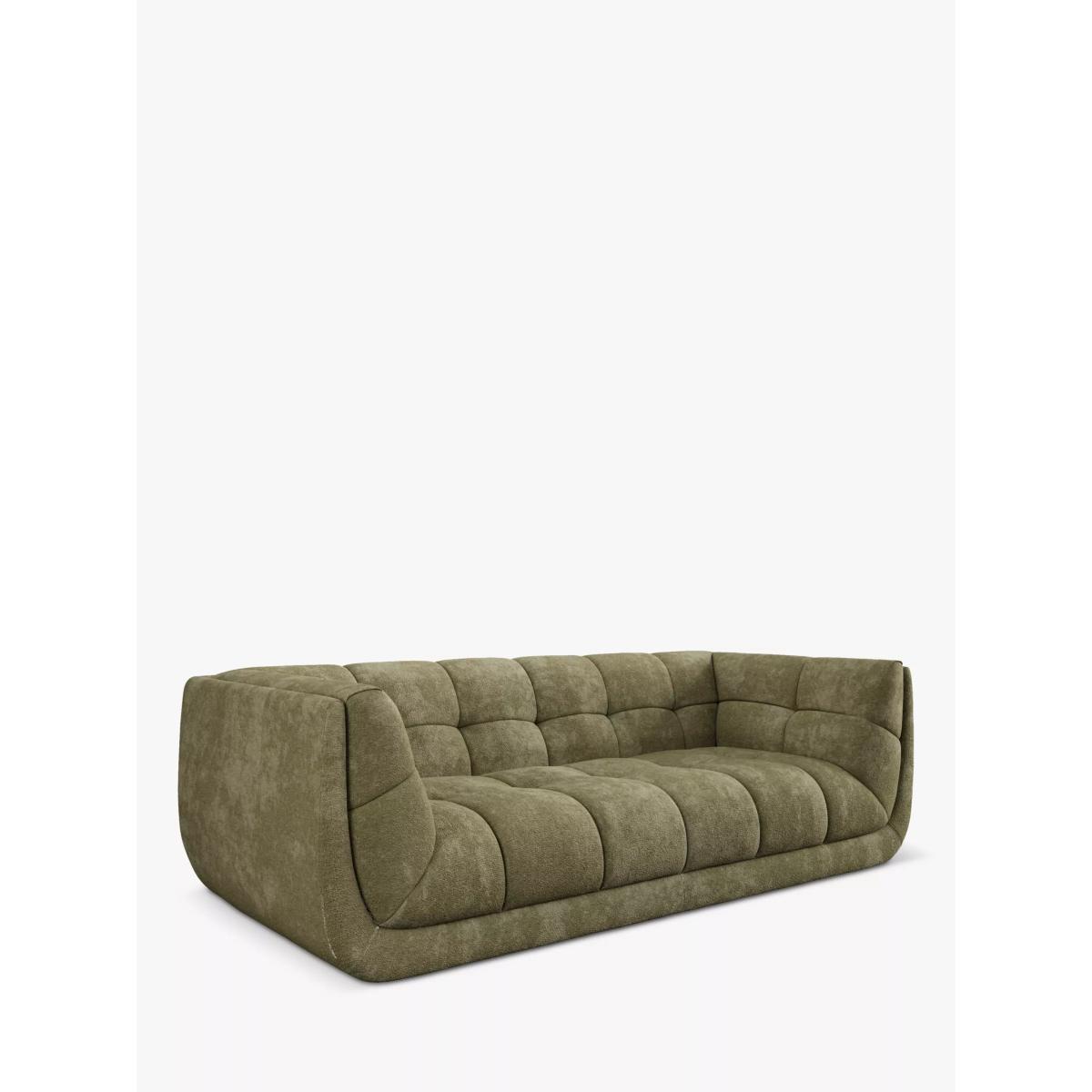 I’m a fan of the Leo grand sofa for its low-slung, grid-tufted silhouette and generous proportions - it feels both modern and inviting. The olive-toned fabric works equally well in a pared-back Scandi scheme or a warm, textured living room, especially paired with natural timber side tables and a jute-weave rug. For styling, keep the look fresh by adding a couple of slim-lined cushions in contrasting hues or subtle prints, then layer a lightweight throw across one arm. A matte-black floor lamp or brass-finish table lamp will lift its relaxed shape while providing practical reading light.