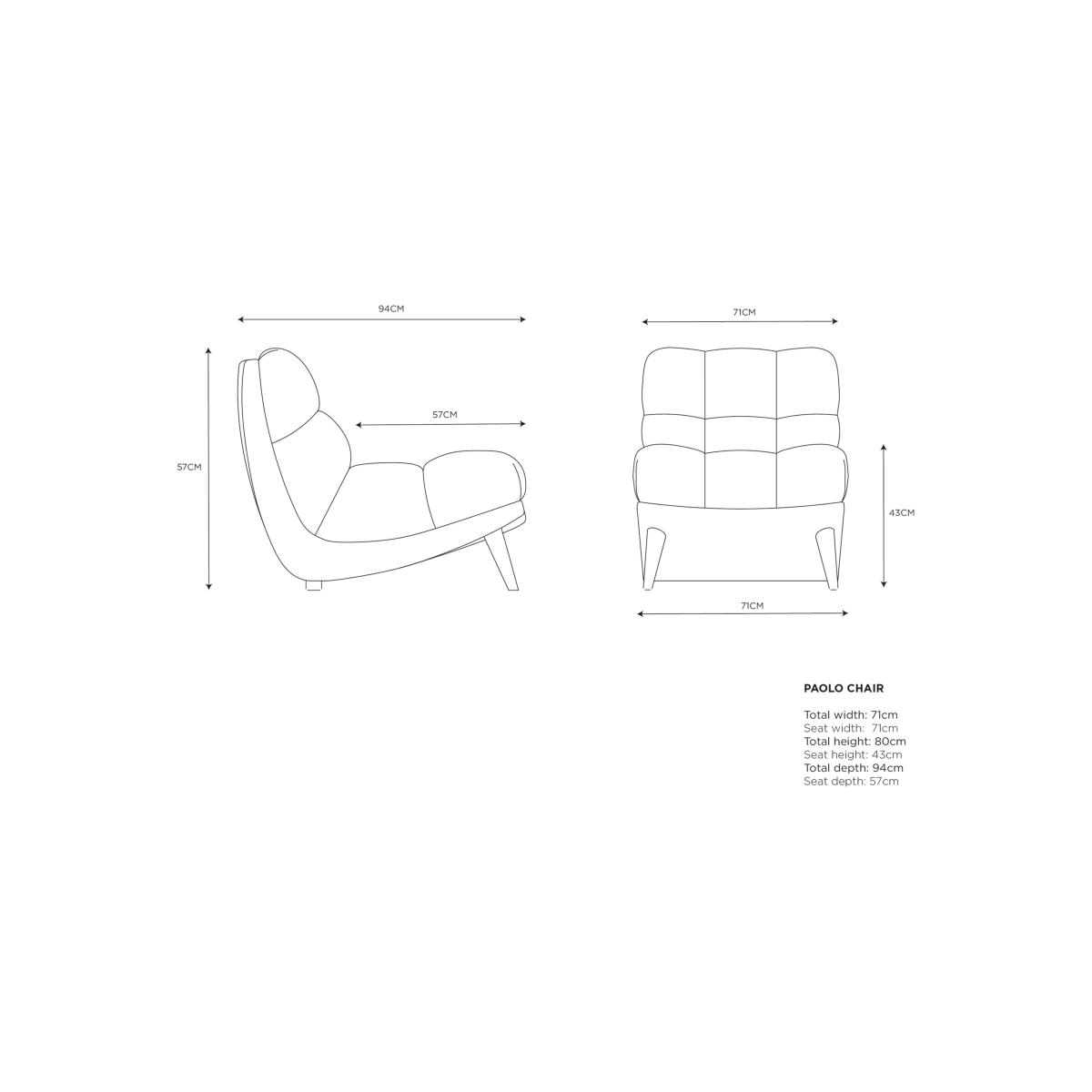 Product Information Paolo is a one-of-a-kind. A modern bucket style seat that hugs and supports the body, giving a laid back and an extremely comfortable sit. With beautiful hand-pulled, tufted seat and back and a curvaceous sit, this chair looks great as a standalone piece or within the Modern Explorer Collections. Owing to variations in computer screen resolution and settings, the fabric you receive may look slightly different to how it appears here. Prior to purchasing, we strongly recommend that you are order a free sample online. Try before you buyWe're confident in our furniture's quality, but it's always a good idea to check that it's a good personal fit for you. Measuring Up for Furniture Guide Sofas, Sofa Beds & Chairs Buying Guide Upholstery Care Guide