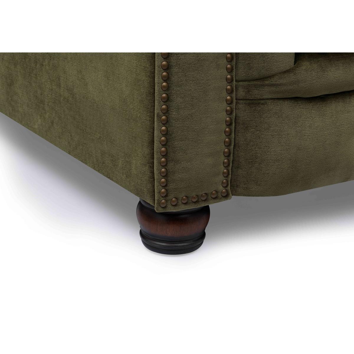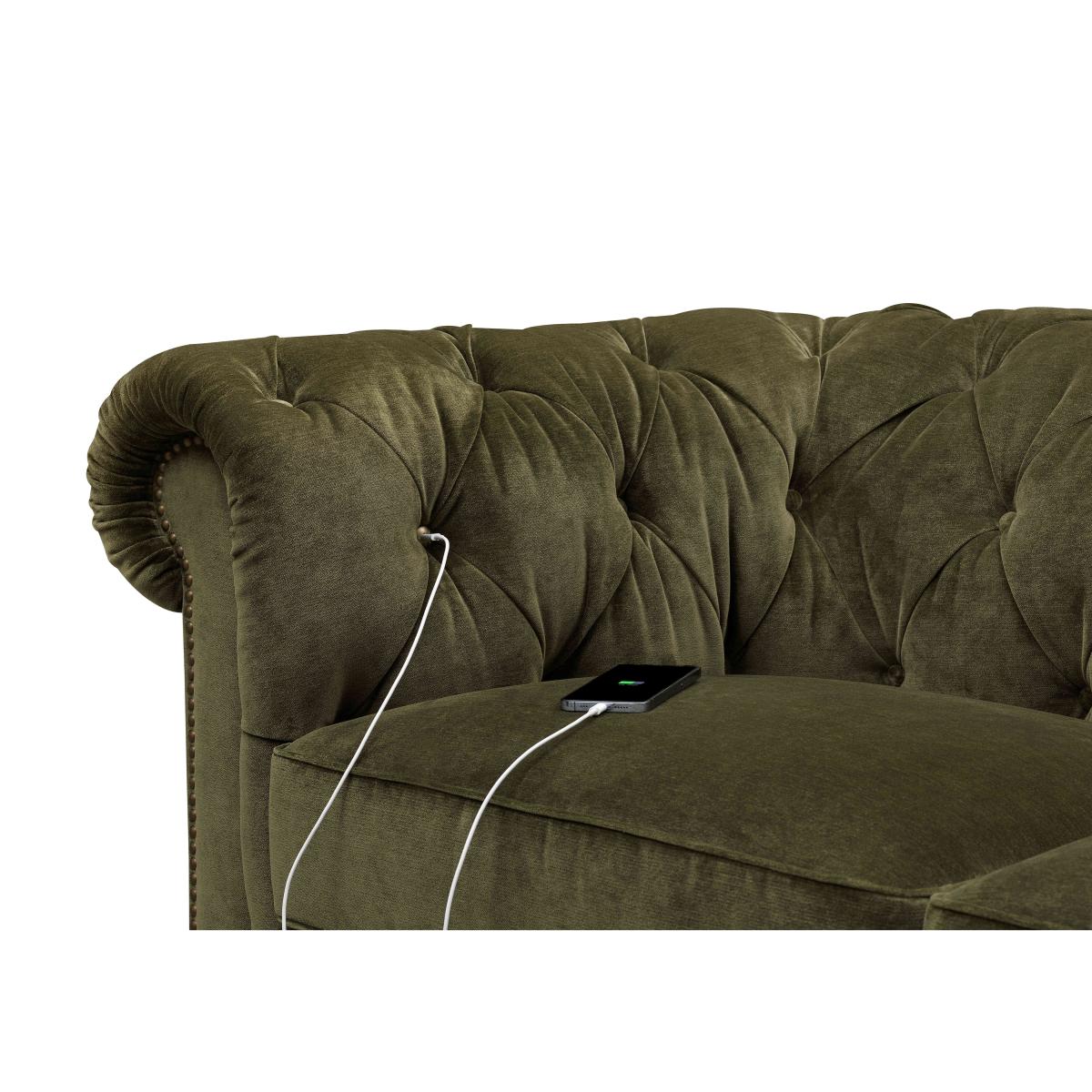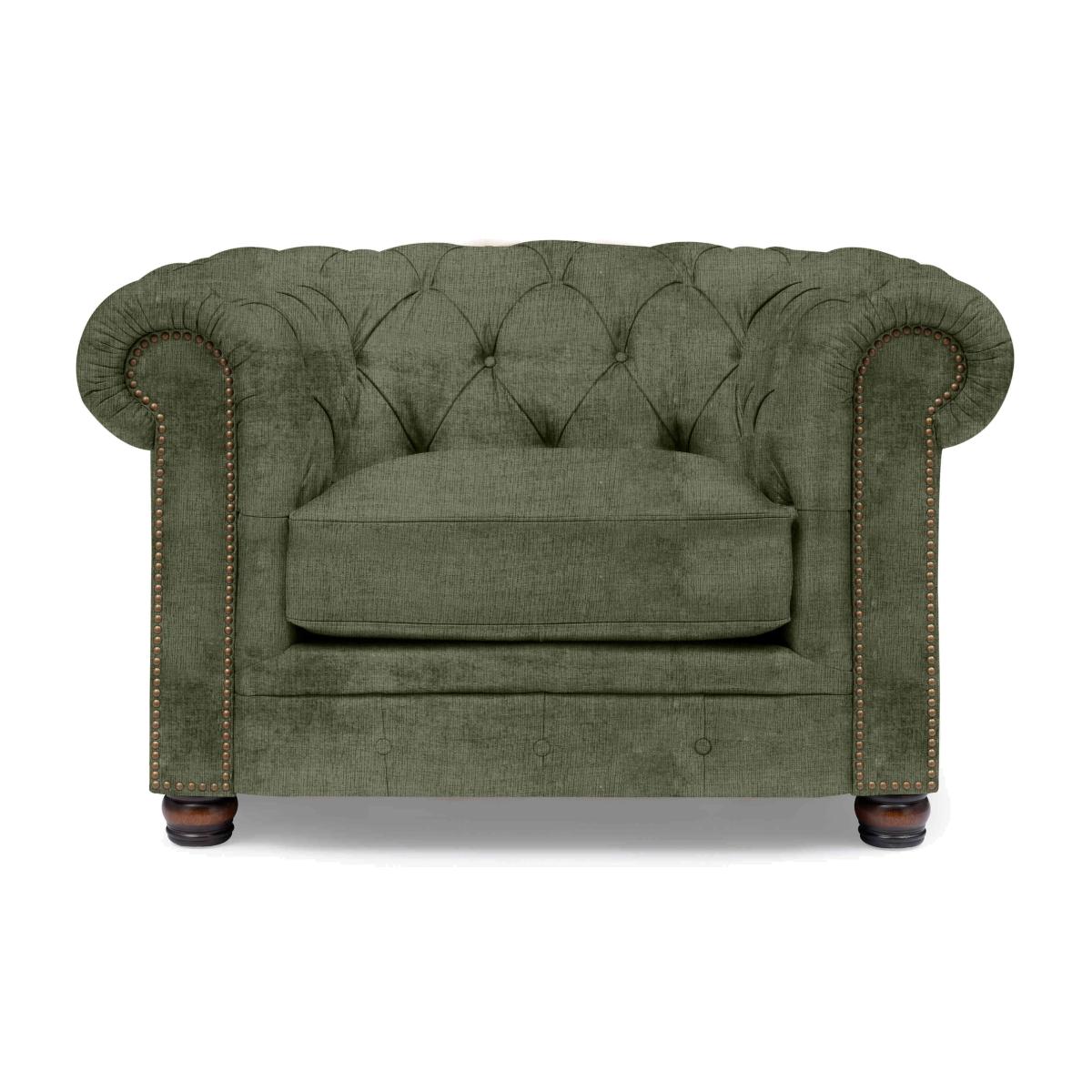 A contemporary interpretation of classic Chesterfield style, our Shackleton range puts equal emphasis on iconic handcrafted details and luxurious modern comfort. You’ll find an abundance of authentic style motifs – buttoning, studding, scrolled arms, turned legs and more – alongside no-sag sprung seats and backs, and pocket spring, memory foam and duck feather cushioning. Designed for relaxed all-day lounging, the Shackleton range also incorporates super-fast USB-C device charging so you can lounge for even longer. This inviting collection comprises a wide choice of Chesterfield sofas as well as armchairs, wing chairs and footstools in both 100% leather and soft fabric. Handmade exclusively for Furniture Village by At The Helm. There’s plenty of iconic Chesterfield style packed into this fabulous fabric-upholstered armchair. You even get super-fast USB-C charging. Why you'll love it Enjoy comfort, style and even USB-C charging with this Chesterfield chair. A British classic reimagined for your contemporary home. All the details – deep buttoning, scrolled arms, metallic studding, wooden bun feet. All the comfort – pocket spring, memory foam and duck feather cushioning. Faster phone, tablet and laptop charging with a USB-C port. Gorgeous velvet-soft fabric upholstery in a choice of cool colours. Superb quality. Hand-applied studding, hand-tied buttoning, hand-turned hardwood feet. Built to last with a solid hardwood frame and no-sag serpentine springs. Exclusive to Furniture Village. Handmade by At The Helm, master crafter of sumptuous sofas for modern living. This fabric Chesterfield chair with USB-C is part of our At The Helm Shackleton collection. What you need to know Medium comfort level. Suspension: no-sag serpentine springs. Cushioning: pocket springs in high-density foam, memory foam, duck feather and fibre top. Feet are removable. Studding in brass or pewter finish, depending on your upholstery choice. Some fabrics can show wear on areas of more use or in direct sunlight. Flattening and shading of heavy wear areas on pile fabrics is unavoidable. Clean regularly using a soft brush or vacuum with the curtain attachment. Deal with any spills promptly. Professional cleaning advised for oil- and grease-based stains. Please read our upholstery care guide for more advice. Please ensure that our delivery team has sufficient access to your home.