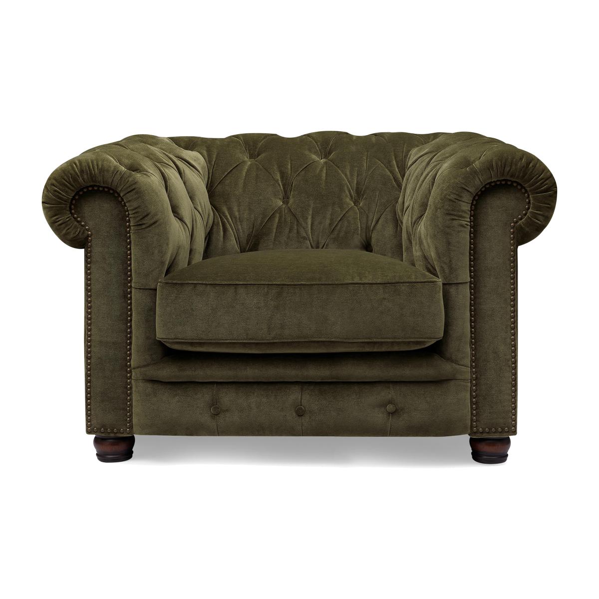 A contemporary interpretation of classic Chesterfield style, our Shackleton range puts equal emphasis on iconic handcrafted details and luxurious modern comfort. You’ll find an abundance of authentic style motifs – buttoning, studding, scrolled arms, turned legs and more – alongside no-sag sprung seats and backs, and pocket spring, memory foam and duck feather cushioning. Designed for relaxed all-day lounging, the Shackleton range also incorporates super-fast USB-C device charging so you can lounge for even longer. This inviting collection comprises a wide choice of Chesterfield sofas as well as armchairs, wing chairs and footstools in both 100% leather and soft fabric. Handmade exclusively for Furniture Village by At The Helm. Here’s the iconic Chesterfield armchair, reinvented to suit contemporary homes and to offer fabulous comfort. Handmade by At The Helm. Why you'll love it Let this fabric Chesterfield armchair take you to the comfort zone. A British classic reimagined for your contemporary home. All the details – deep buttoning, scrolled arms, metallic studding, wooden bun feet. All the comfort – pocket spring, memory foam and duck feather cushioning. Gorgeous velvet-soft fabric upholstery in a choice of cool colours. Superb quality. Hand-applied studding, hand-tied buttoning, hand-turned hardwood feet. Built to last with a solid hardwood frame and no-sag serpentine springs. This chair is also available with a fast-charging USB-C port. Exclusive to Furniture Village. Handmade by At The Helm, master crafter of sumptuous sofas for modern living. This fabric Chesterfield chair is part of our At The Helm Shackleton collection. What you need to know Medium comfort level. Suspension: no-sag serpentine springs. Cushioning: pocket springs in high-density foam, memory foam, duck feather and fibre top. Feet are removable. Studding in brass or pewter finish, depending on your upholstery choice. Some fabrics can show wear on areas of more use or in direct sunlight. Flattening and shading of heavy wear areas on pile fabrics is unavoidable. Clean regularly using a soft brush or vacuum with the curtain attachment. Deal with any spills promptly. Professional cleaning advised for oil- and grease-based stains. Please read our upholstery care guide for more advice. Please ensure that our delivery team has sufficient access to your home.