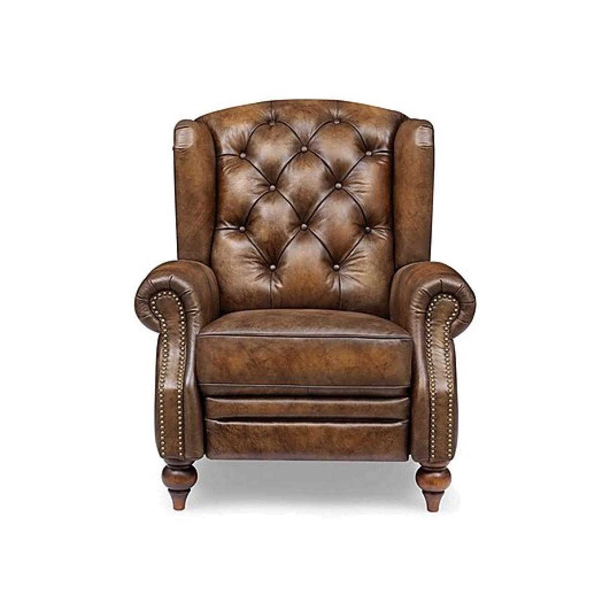 With buttoning, studding and scroll arms, this 100% leather wing chair oozes iconic Chesterfield style. And its incredibly comfortable too. Why you'll love it A British classic reimagined for your contemporary home. With winged sides, deep buttoning, scrolled arms, metallic studding, turned wooden feet. Gorgeous 100% leather upholstery. Superb quality. Hand- applied studding, hand- tied buttoning, hand- turned hardwood feet. Built to last with a solid hardwood frame and no- sag serpentine springs. Exclusive to Furniture Village. Handmade by At The Helm, master crafter of sumptuous sofas for modern living. This leather wing chair is part of our At The Helm Shackleton collection. What you need to know Medium comfort level. Suspension: no- sag serpentine springs. Seat cushioning: medium- and high- density foam, memory foam, Dacron wrap.. Back cushioning: high- density foam. Leather has unique marks and characteristics with variation in colour and texture. Leather softens with use. Smoothing the tops of leather cushions prevents signs of visual comfort. Please read our upholstery care guide for more advice. Please ensure that our delivery team has sufficient access to your home.