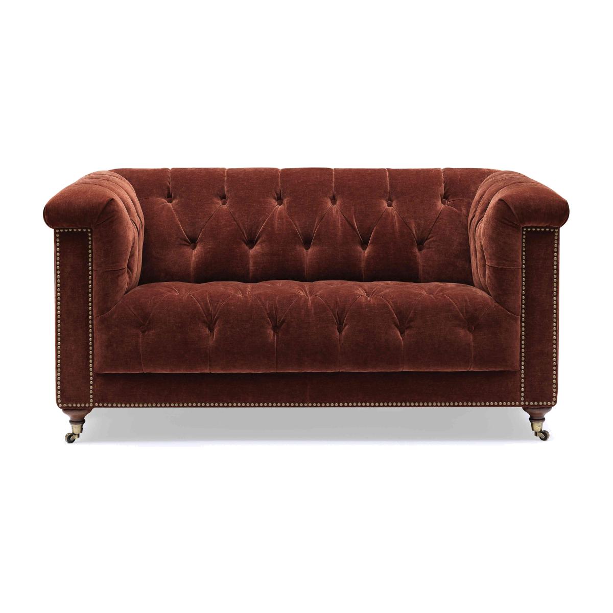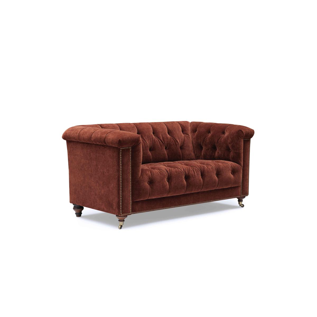 Offering a twist on quintessentially British style, our Wallace Chesterfield range showcases neat rolled arms that stop short of a full scroll to provide the compact proportions and contemporary look that’s perfect for modern living. And this is not the only innovation. Alongside traditional Chesterfield details like deep buttoning, metallic studding and castors, optional super-fast USB-C charging allows you to indulge in undisturbed lounging on the range’s comfortable sprung seats. The Wallace range includes a wide choice of Chesterfield sofas as well as armchairs, accent chairs and footstools in both 100% leather and soft fabric. Handmade exclusively for Furniture Village by At The Helm. Brimming with cool Chesterfield details and with compact arms and a contemporary silhouette, this is the most stylish small-space two-seater sofa. Handmade. Why you'll love it Enjoy this 2-seater fabric Chesterfield sofa with ergonomic proportions. A new twist on the iconic British sofa. Signature scrolled arms have a more compact profile for smaller living spaces. Made for relaxing with ultra-comfy sprung seats. Fabulous Chesterfield details – deep buttoning, metallic studding and castors. Beautifully upholstered in velvet-soft fabric. Choice of on-trend colours. Superb quality with hand-tied buttoning, no-sag springs and a hardwood frame. This sofa is also available with super-fast USB-C device charging. Exclusive to Furniture Village. Handmade by At The Helm, master crafter of sumptuous sofas for modern living. This 2-seater fabric Chesterfield sofa is part of our At The Helm Wallace collection. What you need to know Medium comfort level. Suspension: no-sag serpentine springs. Cushioning: high- and medium-density foam encased in a Dacron wrap. Castors and studding in brass or pewter finish, depending on your upholstery choice. Some fabrics can show wear on areas of more use or in direct sunlight. Flattening and shading of heavy wear areas on pile fabrics is unavoidable. Clean regularly using a soft brush or vacuum with the curtain attachment. Deal with any spills promptly. Professional cleaning advised for oil- and grease-based stains. Please read our upholstery care guide for more advice. Please ensure that our delivery team has sufficient access to your home.