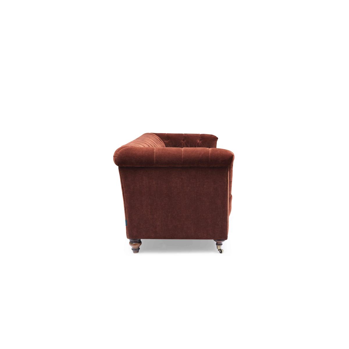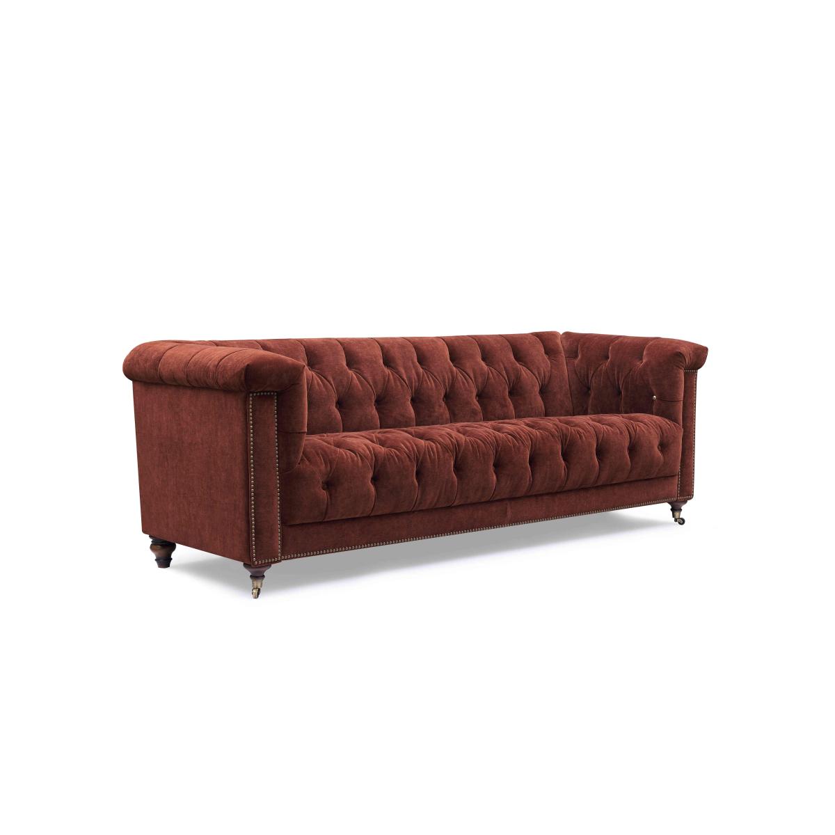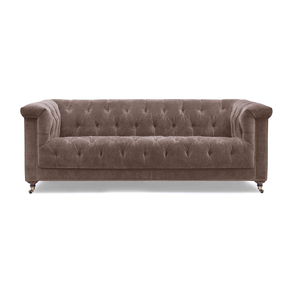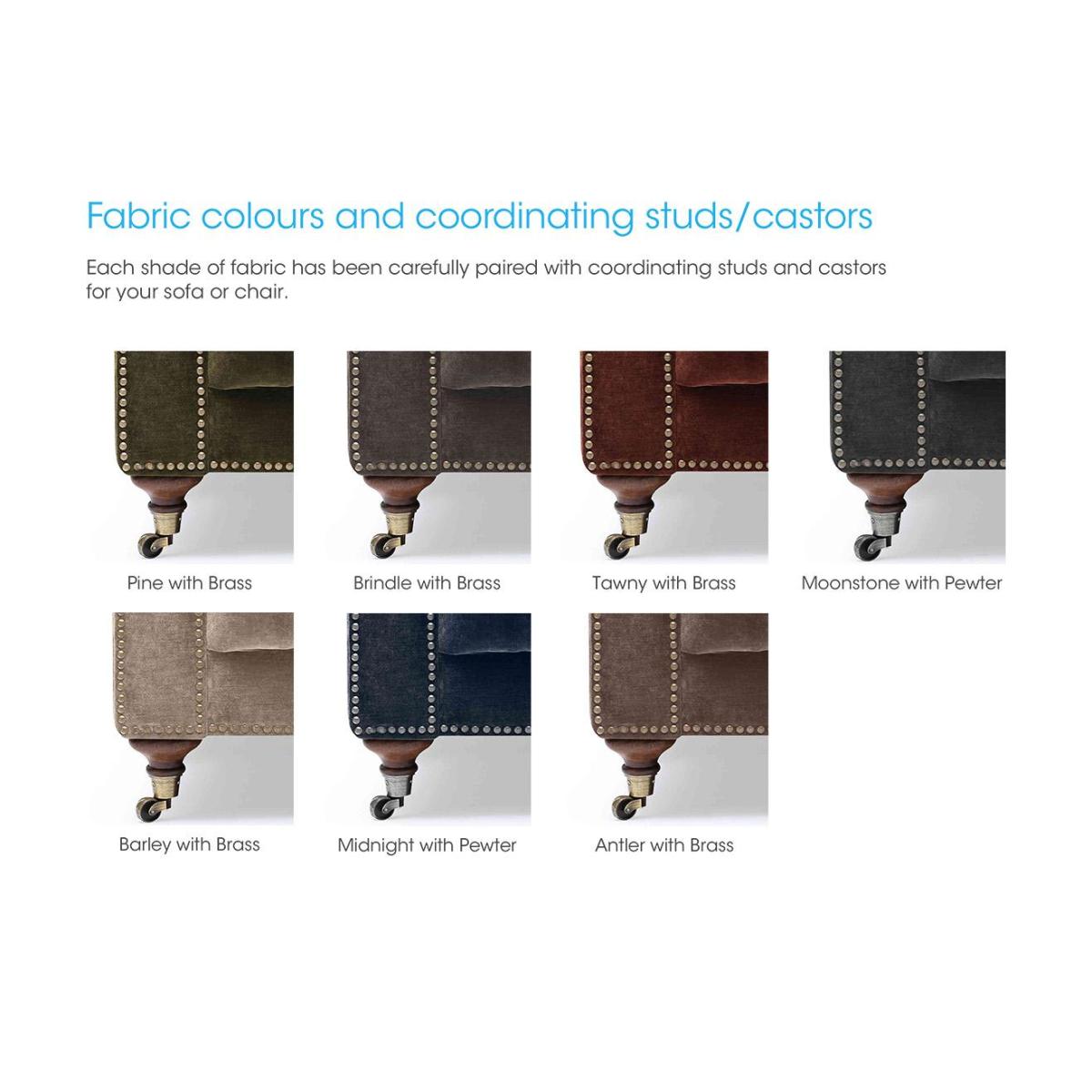 Offering a twist on quintessentially British style, our Wallace Chesterfield range showcases neat rolled arms that stop short of a full scroll to provide the compact proportions and contemporary look that’s perfect for modern living. And this is not the only innovation. Alongside traditional Chesterfield details like deep buttoning, metallic studding and castors, optional super-fast USB-C charging allows you to indulge in undisturbed lounging on the range’s comfortable sprung seats. The Wallace range includes a wide choice of Chesterfield sofas as well as armchairs, accent chairs and footstools in both 100% leather and soft fabric. Handmade exclusively for Furniture Village by At The Helm. Perfectly proportioned and with a stylish contemporary silhouette, this three-seater Chesterfield sofa will transform your modern living space. Why you'll love it This 3-seater fabric Chesterfield sofa has a contemporary silhouette. A new twist on the iconic British sofa. Signature scrolled arms have a more compact profile for smaller living spaces. Made for relaxing with ultra-comfy sprung seats. Fabulous Chesterfield details – deep buttoning, metallic studding and castors. Beautifully upholstered in velvet-soft fabric. Choice of on-trend colours. Superb quality with hand-tied buttoning, no-sag springs and a hardwood frame. This sofa is also available with super-fast USB-C device charging. Exclusive to Furniture Village. Handmade by At The Helm, master crafter of sumptuous sofas for modern living. This 3-seater fabric Chesterfield sofa is part of our At The Helm Wallace collection. What you need to know Medium comfort level. Suspension: no-sag serpentine springs. Cushioning: high- and medium-density foam encased in a Dacron wrap. Castors and studding in brass or pewter finish, depending on your upholstery choice. Some fabrics can show wear on areas of more use or in direct sunlight. Flattening and shading of heavy wear areas on pile fabrics is unavoidable. Clean regularly using a soft brush or vacuum with the curtain attachment. Deal with any spills promptly. Professional cleaning advised for oil- and grease-based stains. Please read our upholstery care guide for more advice. Please ensure that our delivery team has sufficient access to your home.