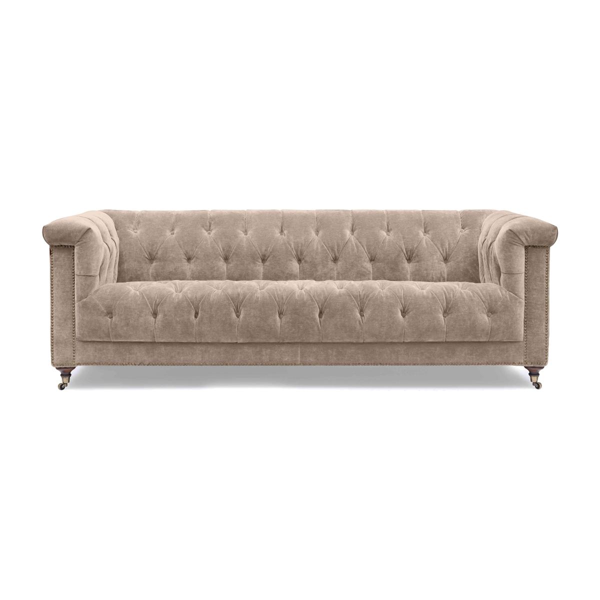 Offering a twist on quintessentially British style, our Wallace Chesterfield range showcases neat rolled arms that stop short of a full scroll to provide the compact proportions and contemporary look that’s perfect for modern living. And this is not the only innovation. Alongside traditional Chesterfield details like deep buttoning, metallic studding and castors, optional super-fast USB-C charging allows you to indulge in undisturbed lounging on the range’s comfortable sprung seats. The Wallace range includes a wide choice of Chesterfield sofas as well as armchairs, accent chairs and footstools in both 100% leather and soft fabric. Handmade exclusively for Furniture Village by At The Helm. The perfect family sofa? We think so. This large Chesterfield sofa has two USB-C charging points and is a wonderfully comfy place to chill. Handmade for us by At The Helm. Why you'll love it The whole family will love this 4-seater fabric Chesterfield sofa with USB-C. A new twist on the iconic British sofa. Signature scrolled arms have a more compact profile for smaller living spaces. Made for relaxing with super-fast USB-C charging and sprung-seat comfort. Fabulous Chesterfield details – deep buttoning, metallic studding and castors. Beautifully upholstered in velvet-soft fabric. Choice of on-trend colours. Superb quality with hand-tied buttoning, no-sag springs and a hardwood frame. Exclusive to Furniture Village. Handmade by At The Helm, master crafter of sumptuous sofas for modern living. This 4-seater fabric Chesterfield sofa with USB-C is part of our At The Helm Wallace collection. What you need to know Medium comfort level. Suspension: no-sag serpentine springs. Cushioning: high- and medium-density foam encased in a Dacron wrap. Castors and studding in brass or pewter finish, depending on your upholstery choice. Some fabrics can show wear on areas of more use or in direct sunlight. Flattening and shading of heavy wear areas on pile fabrics is unavoidable. Clean regularly using a soft brush or vacuum with the curtain attachment. Deal with any spills promptly. Professional cleaning advised for oil- and grease-based stains. Please read our upholstery care guide for more advice. Please ensure that our delivery team has sufficient access to your home.