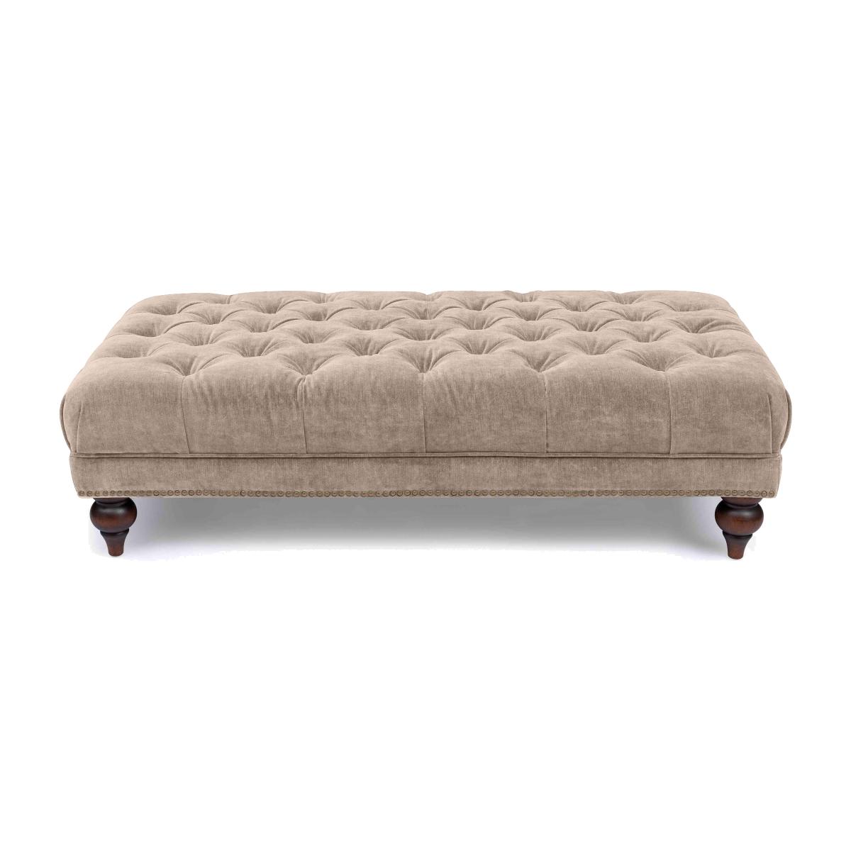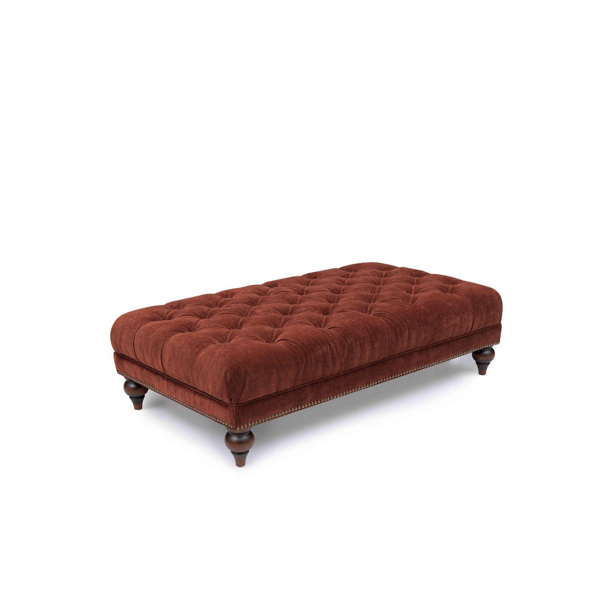 Offering a twist on quintessentially British style, our Wallace Chesterfield range showcases neat rolled arms that stop short of a full scroll to provide the compact proportions and contemporary look that’s perfect for modern living. And this is not the only innovation. Alongside traditional Chesterfield details like deep buttoning, metallic studding and castors, optional super-fast USB-C charging allows you to indulge in undisturbed lounging on the range’s comfortable sprung seats. The Wallace range includes a wide choice of Chesterfield sofas as well as armchairs, accent chairs and footstools in both 100% leather and soft fabric. Handmade exclusively for Furniture Village by At The Helm. Stylish and elegant, this large rectangular fabric-upholstered footstool with turned wooden feet features plenty of iconic Chesterfield style details. By At The Helm. Why you'll love it You’ll find so many uses for this rectangular footstool with turned feet. Iconic Chesterfield style. Fabulous details – deep buttoning, studding and turned wood feet. Beautifully upholstered in velvet-soft fabric. Choice of on-trend colours. Superb quality with hand-tied buttoning and a hardwood frame. Designed to complement all At The Helm sofas and chairs. Exclusive to Furniture Village. Handmade by At The Helm, master crafter of sumptuous sofas for modern living. This fabric rectangular footstool with turned feet is part of our At The Helm Wallace collection. What you need to know Top cushioning: foam. Studding in brass or pewter finish, depending on your upholstery choice. Some fabrics can show wear on areas of more use or in direct sunlight. Flattening and shading of heavy wear areas on pile fabrics is unavoidable. Clean regularly using a soft brush or vacuum with the curtain attachment. Deal with any spills promptly. Professional cleaning advised for oil- and grease-based stains. Please read our upholstery care guide for more advice. Please ensure that our delivery team has sufficient access to your home.