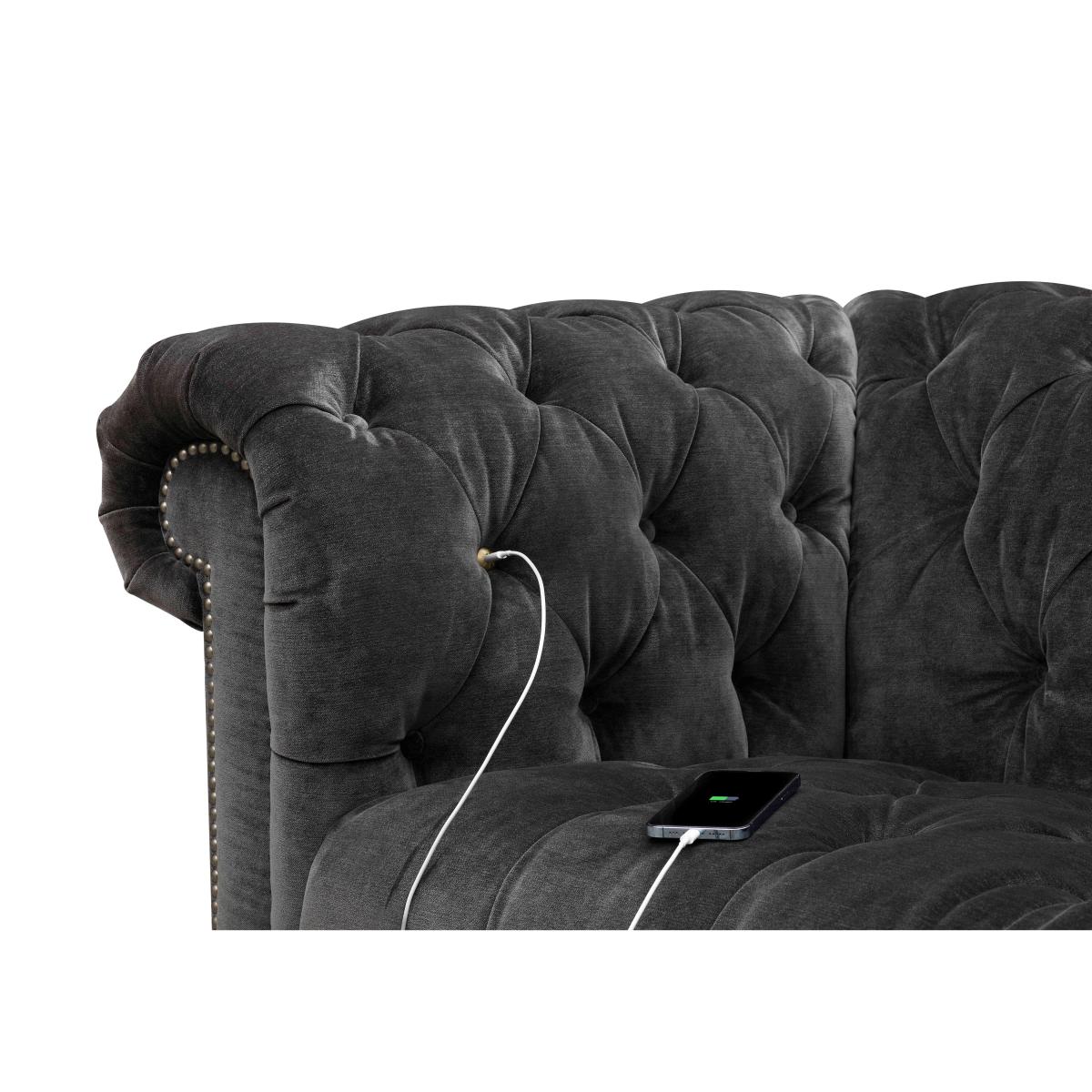 Classic Chesterfield style and high-tech comfort come together in our Walter collection, designed for all-day lounging. You’ll appreciate the wealth of authentic details, from the deep buttoning and metallic studding to those sweeping scroll arms and traditional castors. And you can expect just as many comfort features – from sprung seats to luxurious cushioning to optional fast USB-C charging. Simply curl up against its well-padded arms to watch a movie and you’ll understand why a Walter sofa or chair is a living room must-have. The Walter range includes a wide choice of Chesterfield sofas and armchairs in both 100% leather and soft fabric. Handmade exclusively for Furniture Village by At The Helm. This smaller Chesterfield is big on comfort thanks to its sprung seats and superb cushioning. And with built-in USB-C charging you can lounge for longer. Handcrafted for us by At The Helm. Why you'll love it Kick back in style with this 2-seater fabric Chesterfield sofa with USB-C. A new original designed for all-day lounging. Super-fast USB-C charging means you can relax for longer. Curl up against the sumptuous scrolled and pleated arms. So many Chesterfield details including buttoning, studding and castors. Beautifully soft fabric upholstery in a choice of on-trend colours. Superb craftsmanship – double hand-tied buttoning and hand-applied studding. Exclusive to Furniture Village. Handmade by At The Helm, master crafter of sumptuous sofas for modern living. This 2-seater fabric Chesterfield sofa with USB-C is part of our At The Helm Walter collection. What you need to know Medium comfort level. Suspension: no-sag serpentine springs. Cushioning: high- and medium-density foam encased in a Dacron wrap. Castors and studding in brass or pewter finish, depending on your upholstery choice. Some fabrics can show wear on areas of more use or in direct sunlight. Flattening and shading of heavy wear areas on pile fabrics is unavoidable. Clean regularly using a soft brush or vacuum with the curtain attachment. Deal with any spills promptly. Professional cleaning advised for oil- and grease-based stains. Please read our upholstery care guide for more advice. Please ensure that our delivery team has sufficient access to your home.