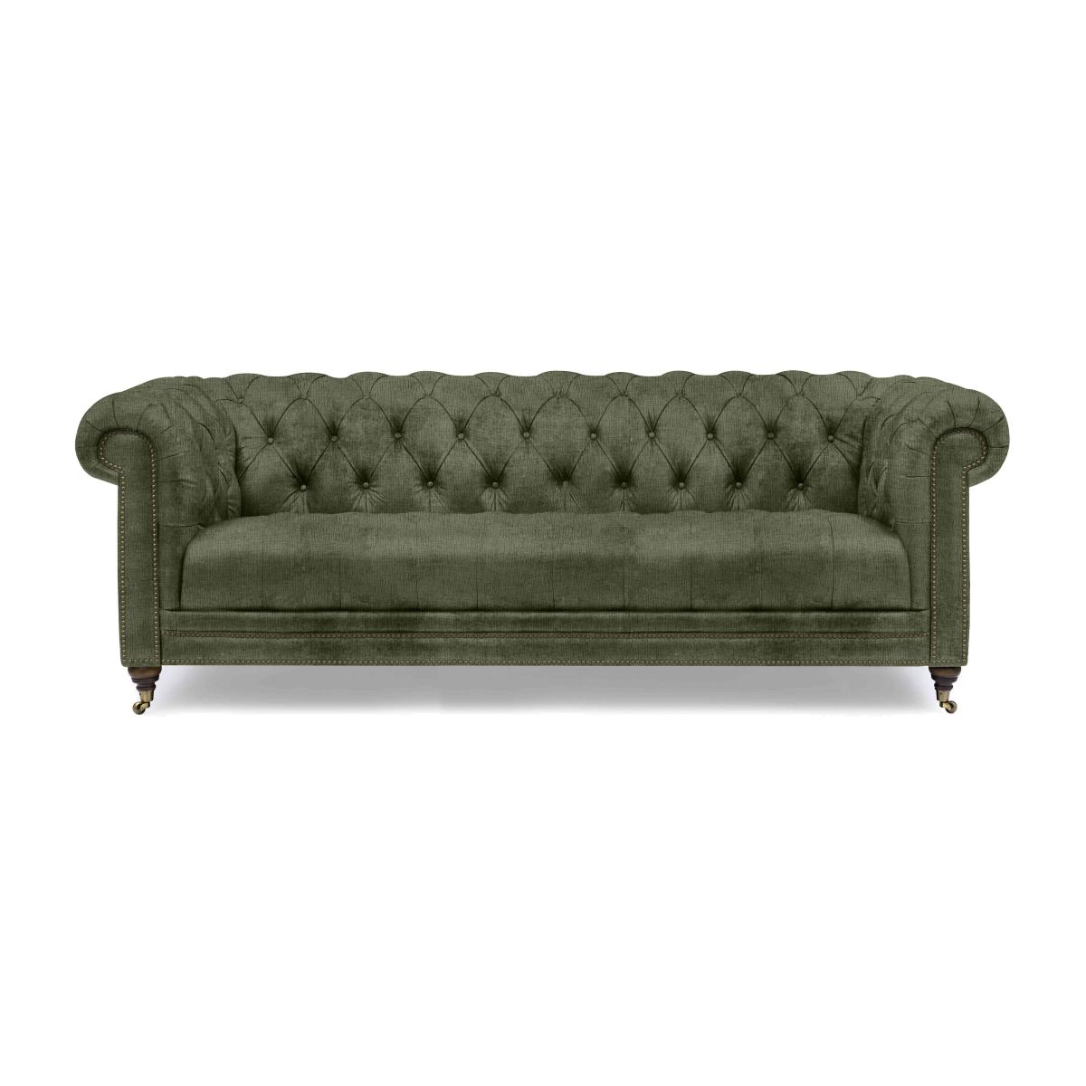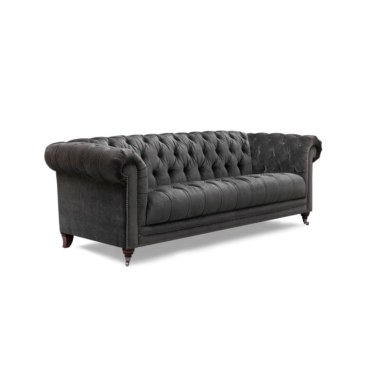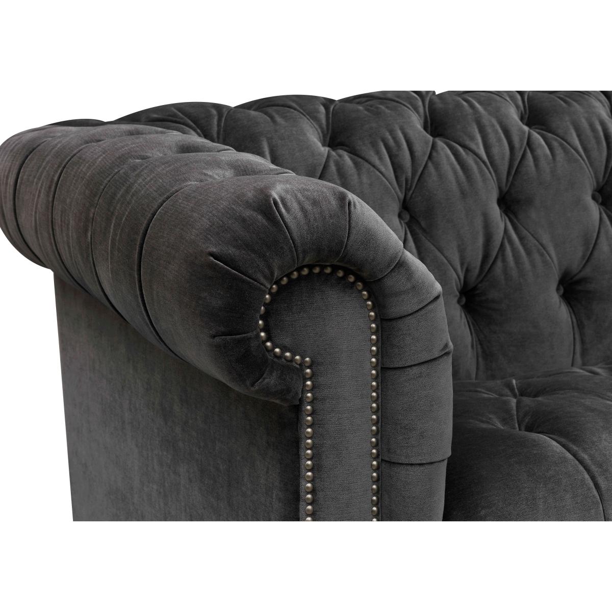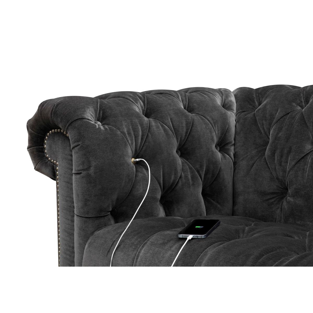 Classic Chesterfield style and high-tech comfort come together in our Walter collection, designed for all-day lounging. You’ll appreciate the wealth of authentic details, from the deep buttoning and metallic studding to those sweeping scroll arms and traditional castors. And you can expect just as many comfort features – from sprung seats to luxurious cushioning to optional fast USB-C charging. Simply curl up against its well-padded arms to watch a movie and you’ll understand why a Walter sofa or chair is a living room must-have. The Walter range includes a wide choice of Chesterfield sofas and armchairs in both 100% leather and soft fabric. Handmade exclusively for Furniture Village by At The Helm. This large Chesterfield sofa has all the original design details that you love plus some very welcome features – like USB-C charging – that keep you comfy for longer. Why you'll love it 4-seater fabric Chesterfield sofa is even better with built-in USB-C. A new original designed for all-day lounging. Super-fast USB-C charging means you can relax for longer. Curl up against the sumptuous scrolled and pleated arms. So many Chesterfield details including buttoning, studding and castors. Beautifully soft fabric upholstery in a choice of on-trend colours. Superb craftsmanship – double hand-tied buttoning and hand-applied studding. Exclusive to Furniture Village. Handmade by At The Helm, master crafter of sumptuous sofas for modern living. This 4-seater fabric Chesterfield sofa with USB-C is part of our At The Helm Walter collection. What you need to know Medium comfort level. Suspension: no-sag serpentine springs. Cushioning: high- and medium-density foam encased in a Dacron wrap. Castors and studding in brass or pewter finish, depending on your upholstery choice. Some fabrics can show wear on areas of more use or in direct sunlight. Flattening and shading of heavy wear areas on pile fabrics is unavoidable. Clean regularly using a soft brush or vacuum with the curtain attachment. Deal with any spills promptly. Professional cleaning advised for oil- and grease-based stains. Please read our upholstery care guide for more advice. Please ensure that our delivery team has sufficient access to your home.
