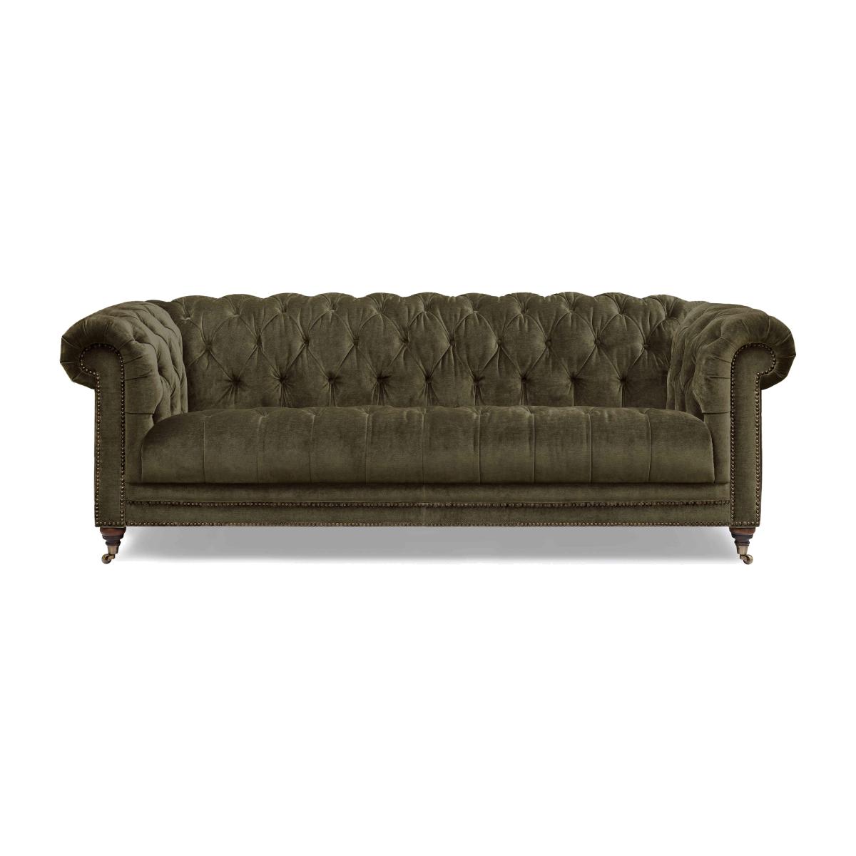 Classic Chesterfield style and high-tech comfort come together in our Walter collection, designed for all-day lounging. You’ll appreciate the wealth of authentic details, from the deep buttoning and metallic studding to those sweeping scroll arms and traditional castors. And you can expect just as many comfort features – from sprung seats to luxurious cushioning to optional fast USB-C charging. Simply curl up against its well-padded arms to watch a movie and you’ll understand why a Walter sofa or chair is a living room must-have. The Walter range includes a wide choice of Chesterfield sofas and armchairs in both 100% leather and soft fabric. Handmade exclusively for Furniture Village by At The Helm. This large family-sized Chesterfield sofa with authentic design details makes a bold statement in any space and is every bit as roomy and comfortable as it looks. Handcrafted and in a choice of fabrics. Why you'll love it Relax on this fabulous family-sized 4-seater fabric Chesterfield sofa. A new original designed for all-day lounging. Curl up against the sumptuous scrolled and pleated arms. So many Chesterfield details including buttoning, studding and castors. Beautifully soft fabric upholstery in a choice of on-trend colours. Superb craftsmanship – double hand-tied buttoning and hand-applied studding. Also available with fast USB-C charging. Exclusive to Furniture Village. Handmade by At The Helm, master crafter of sumptuous sofas for modern living. This 4-seater fabric Chesterfield sofa is part of our At The Helm Walter collection. What you need to know Medium comfort level. Suspension: no-sag serpentine springs. Cushioning: high- and medium-density foam encased in a Dacron wrap. Castors and studding in brass or pewter finish, depending on your upholstery choice. Some fabrics can show wear on areas of more use or in direct sunlight. Flattening and shading of heavy wear areas on pile fabrics is unavoidable. Clean regularly using a soft brush or vacuum with the curtain attachment. Deal with any spills promptly. Professional cleaning advised for oil- and grease-based stains. Please read our upholstery care guide for more advice. Please ensure that our delivery team has sufficient access to your home.