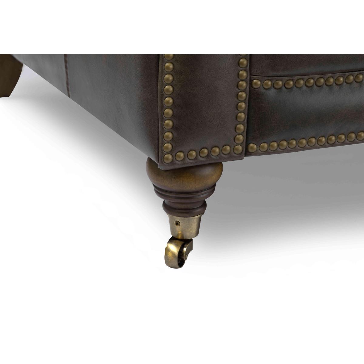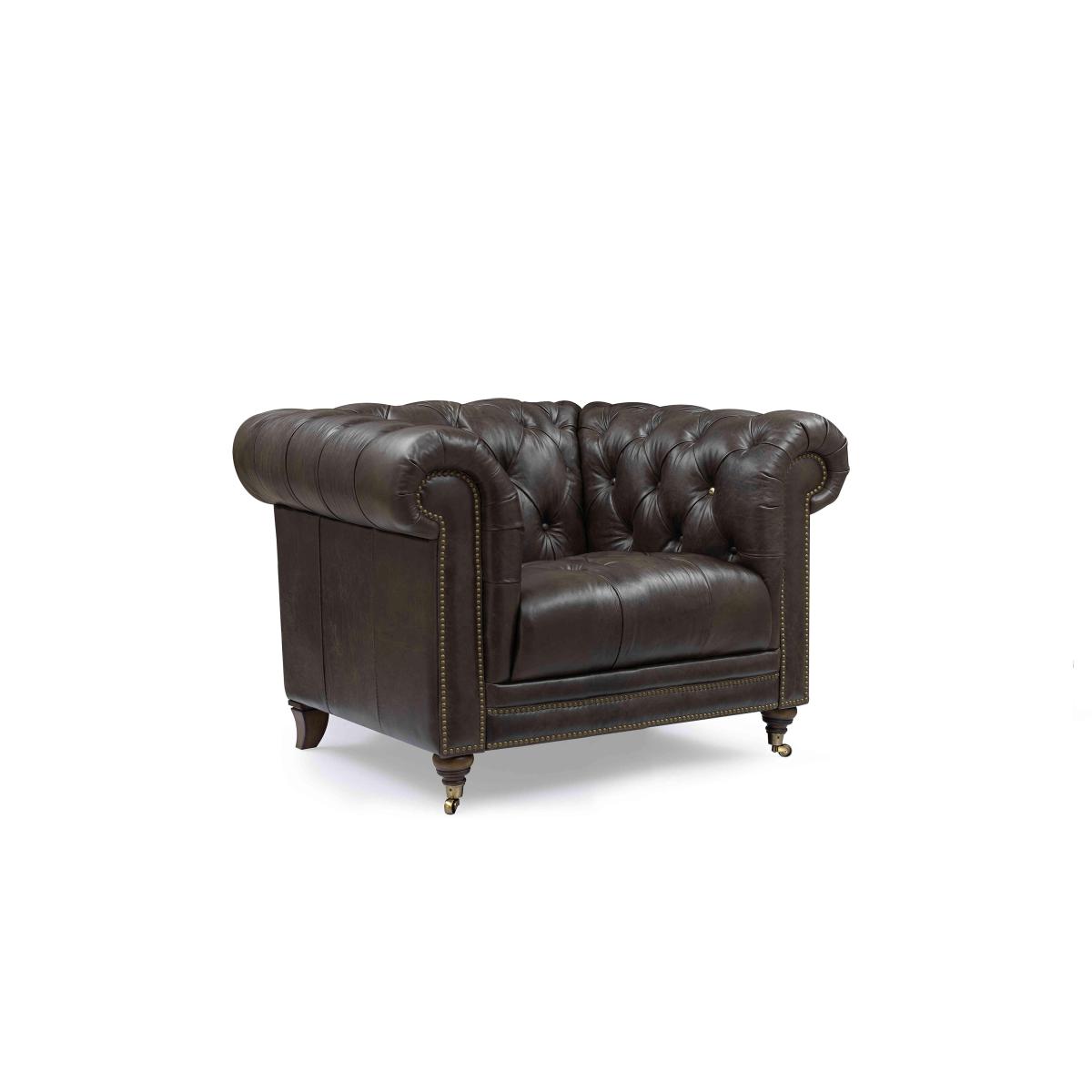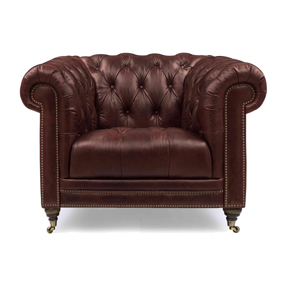 Classic Chesterfield style and high-tech comfort come together in our Walter collection, designed for all-day lounging. You’ll appreciate the wealth of authentic details, from the deep buttoning and metallic studding to those sweeping scroll arms and traditional castors. And you can expect just as many comfort features – from sprung seats to luxurious cushioning to optional fast USB-C charging. Simply curl up against its well-padded arms to watch a movie and you’ll understand why a Walter sofa or chair is a living room must-have. The Walter range includes a wide choice of Chesterfield sofas and armchairs in both 100% leather and soft fabric. Handmade exclusively for Furniture Village by At The Helm.You’ll be happy to settle down on this stylish leather Chesterfield chair for an hour or three. With a sprung seat, superb cushioning and USB-C port, it’s made for lounging. Handmade. Why you'll love it This inviting leather Chesterfield chair with USB-C will keep you comfy for hours. A new original designed for all-day lounging. Super-fast USB-C charging means you can relax for longer. Curl up against the sumptuous scrolled and pleated arms. So many Chesterfield details including buttoning, studding and castors. Beautiful 100% leather upholstery in a choice of on-trend colours. Superb craftsmanship – double hand-tied buttoning and hand-applied studding. Exclusive to Furniture Village. Handmade by At The Helm, master crafter of sumptuous sofas for modern living. This leather Chesterfield chair with USB-C is part of our At The Helm Walter collection. What you need to know Medium comfort level. Suspension: no-sag serpentine springs. Cushioning: high- and medium-density foam encased in a Dacron wrap. Castors and studding in brass or pewter finish, depending on your upholstery choice. Leather has unique marks and characteristics with variation in colour and texture. Leather softens with use. Smoothing the tops of leather cushions prevents signs of visual comfort. Please read our upholstery care guide for more advice. Please ensure that our delivery team has sufficient access to your home.