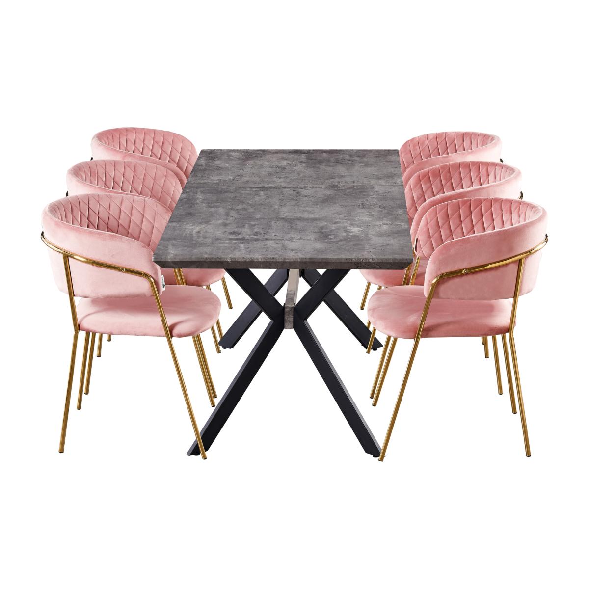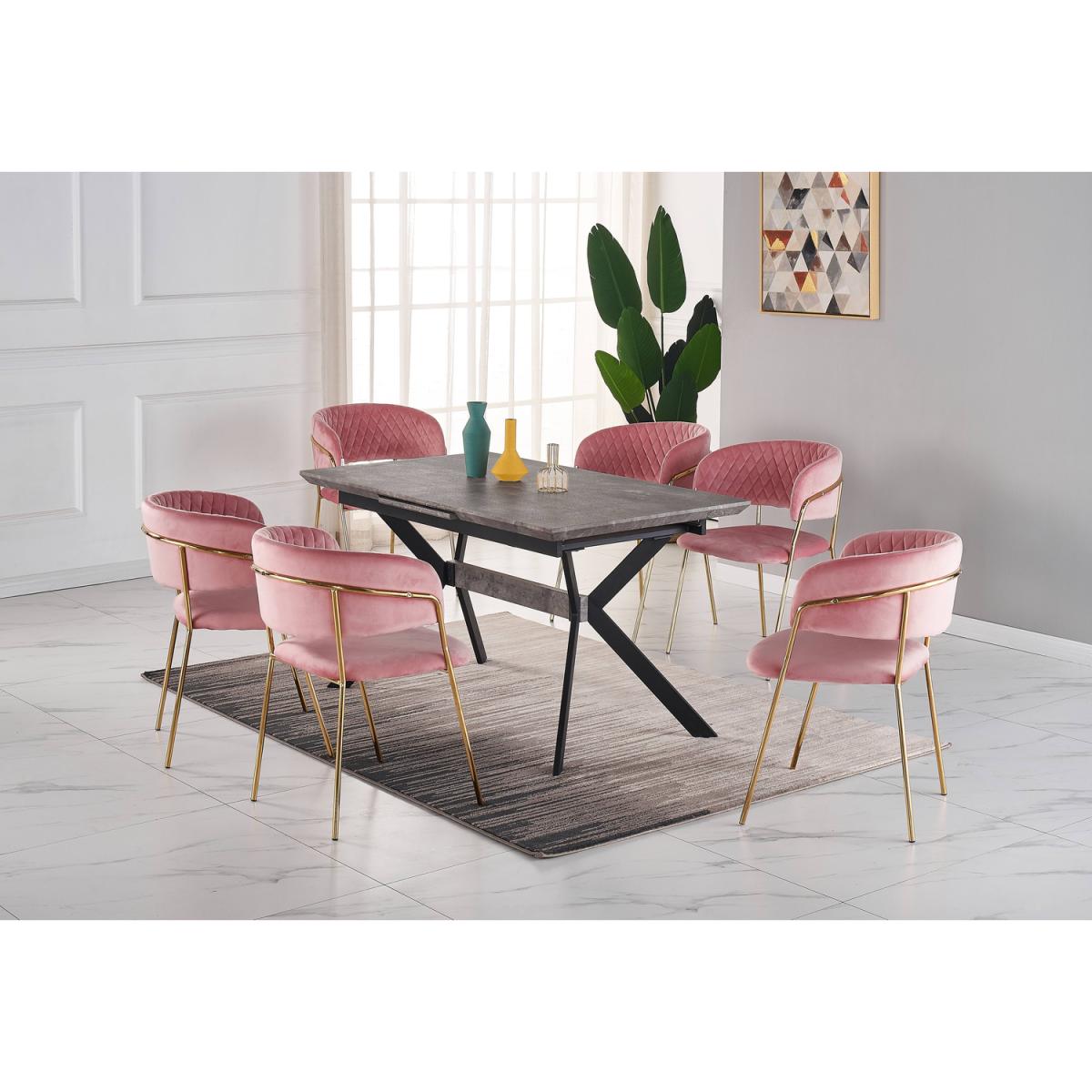 We are introducing the Atarah Blaze dining set of 6 that includes a Blaze Rectangle Dining Table, which features an evergreen aesthetic and functionality of iconic mid-century modern furniture. Simply pull the table ends apart and an extra leaf pops into place allowing you to seat six with ease. The base is the sculptural cross-shaped design of legs in powder-coated MDF. The chic and innovative table to pass the test of time and help you live better. Comes with the Atarah LUX Velvet dining chairs, expertly designed, featuring a gold frame paired with the high-quality velvet with quilted embroidery accentuating the luxury feel and is sure to make a statement in your space. The Atarah chairs have been built from the ground up, with style, class, and high-quality craftsmanship in mind. To ensure this wonderful Velvet finish dining chair meets expectations, we have had to go into high levels of detail to secure this retro look with a modern twist. The dining set is ideal for the dining room, kitchen restaurant, and many more.