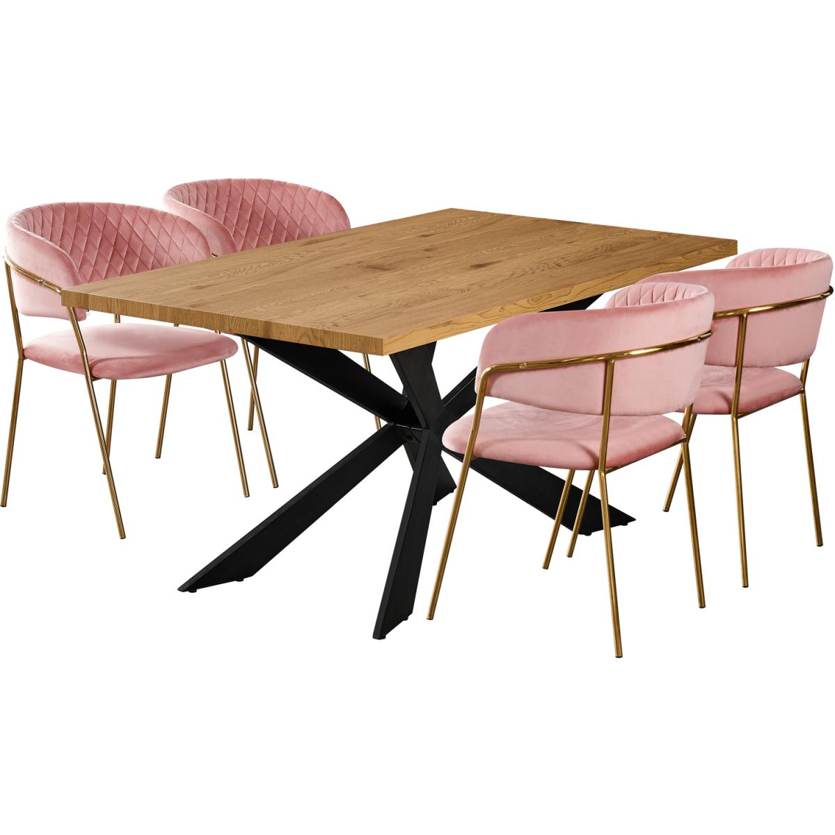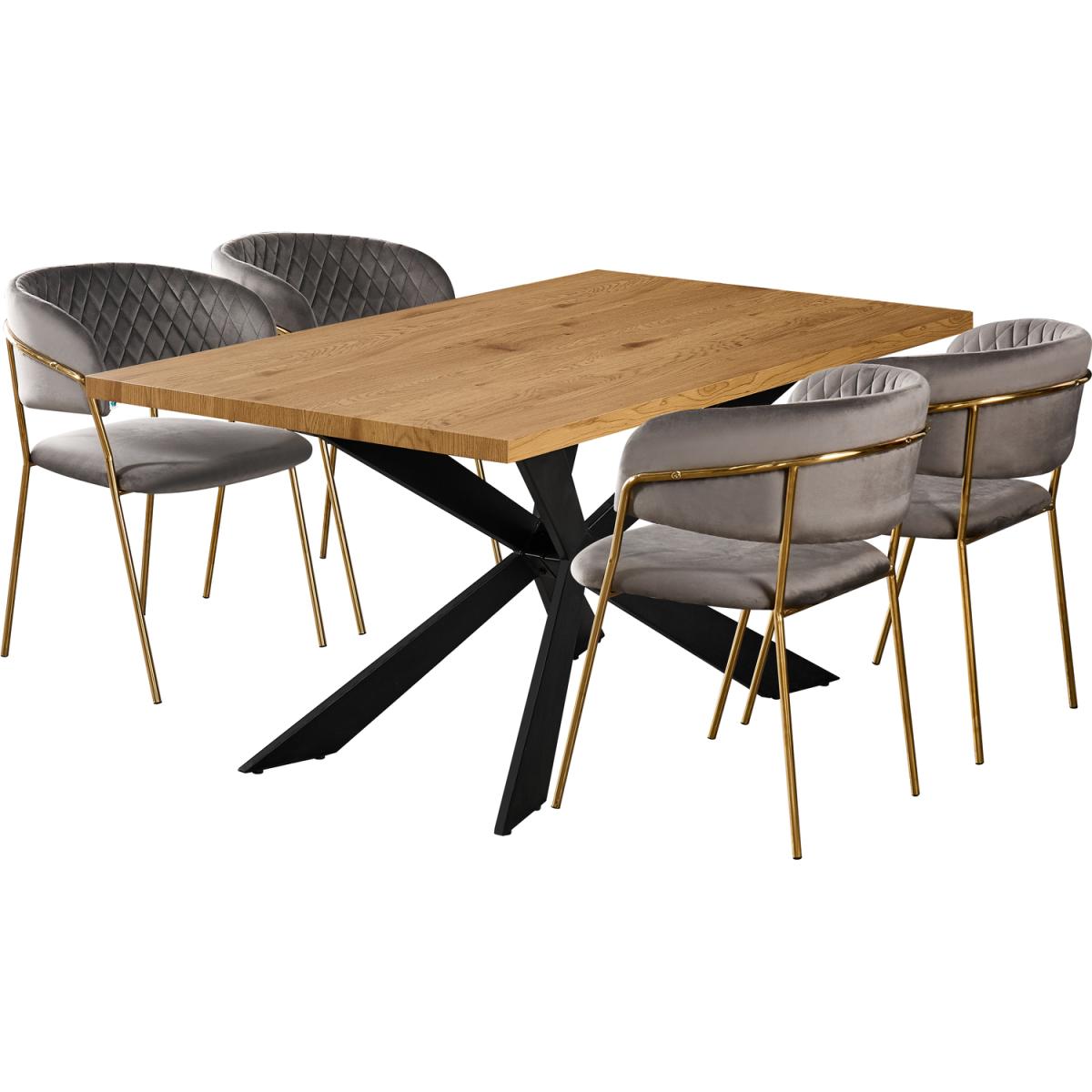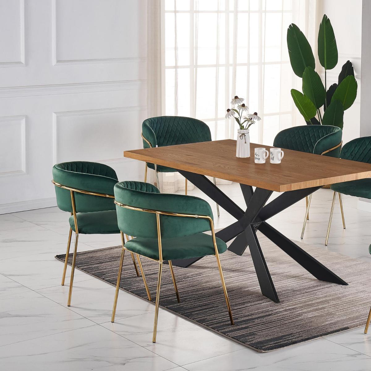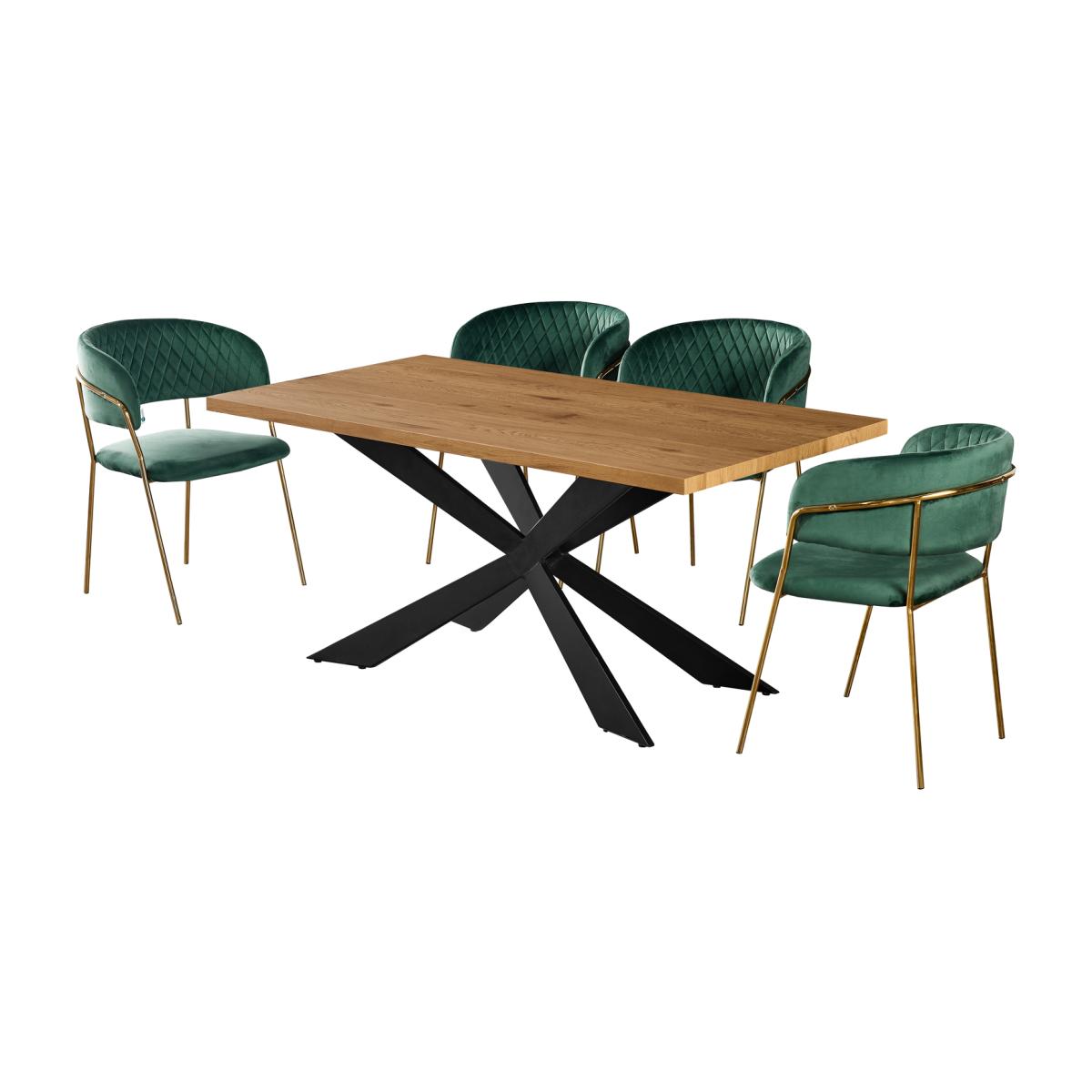 We are offering the dining set of 4 that includes the Duke table featuring a quality finish with a stylish aesthetic and is sure to start a conversation. The Metal powder coated legs are sturdy and built to stand the test of time and with their X-form design make a striking statement. The duke table comes with the Atarah LUX Velvet dining chairs, expertly designed, featuring a gold frame paired with the high-quality velvet with quilted embroidery accentuating the luxury feel and is sure to make a statement in your space. The Atarah chairs have been built from the ground up, with style, class, and high-quality craftsmanship in mind. To ensure this wonderful Velvet finish dining chair meets expectations, we have had to go into high levels of detail to secure this retro look with a modern twist. The dining set is ideal for the dining room, kitchen restaurant, and many more.