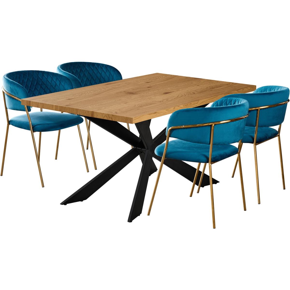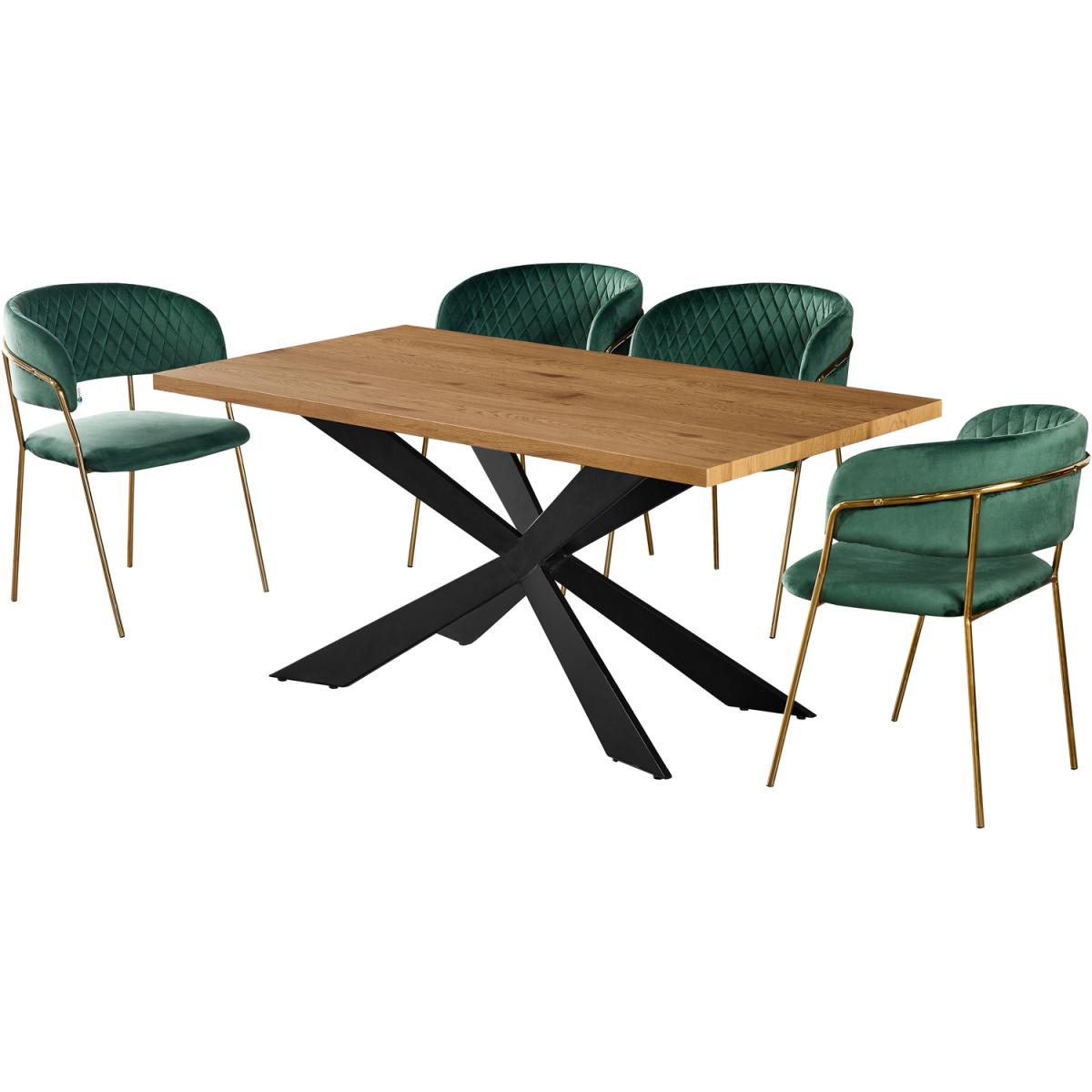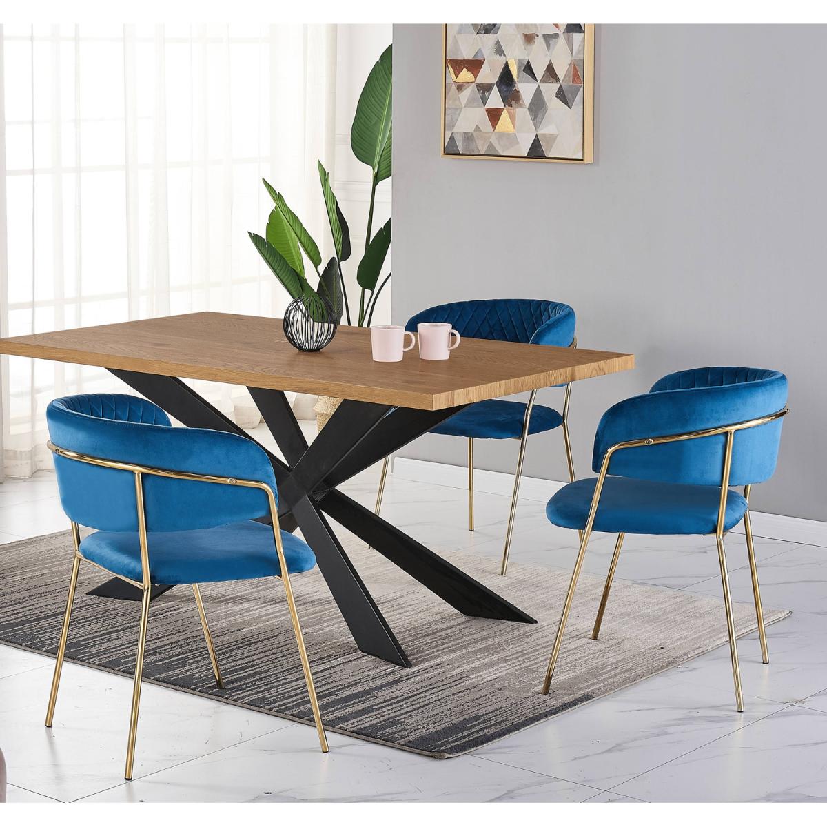 We are offering the dining set of 4 that includes the Duke table featuring a quality finish with a stylish aesthetic and is sure to start a conversation. The Metal powder coated legs are sturdy and built to stand the test of time and with their X-form design make a striking statement. The duke table comes with the Atarah LUX Velvet dining chairs, expertly designed, featuring a gold frame paired with the high-quality velvet with quilted embroidery accentuating the luxury feel and is sure to make a statement in your space. The Atarah chairs have been built from the ground up, with style, class, and high-quality craftsmanship in mind. To ensure this wonderful Velvet finish dining chair meets expectations, we have had to go into high levels of detail to secure this retro look with a modern twist. The dining set is ideal for the dining room, kitchen restaurant, and many more.