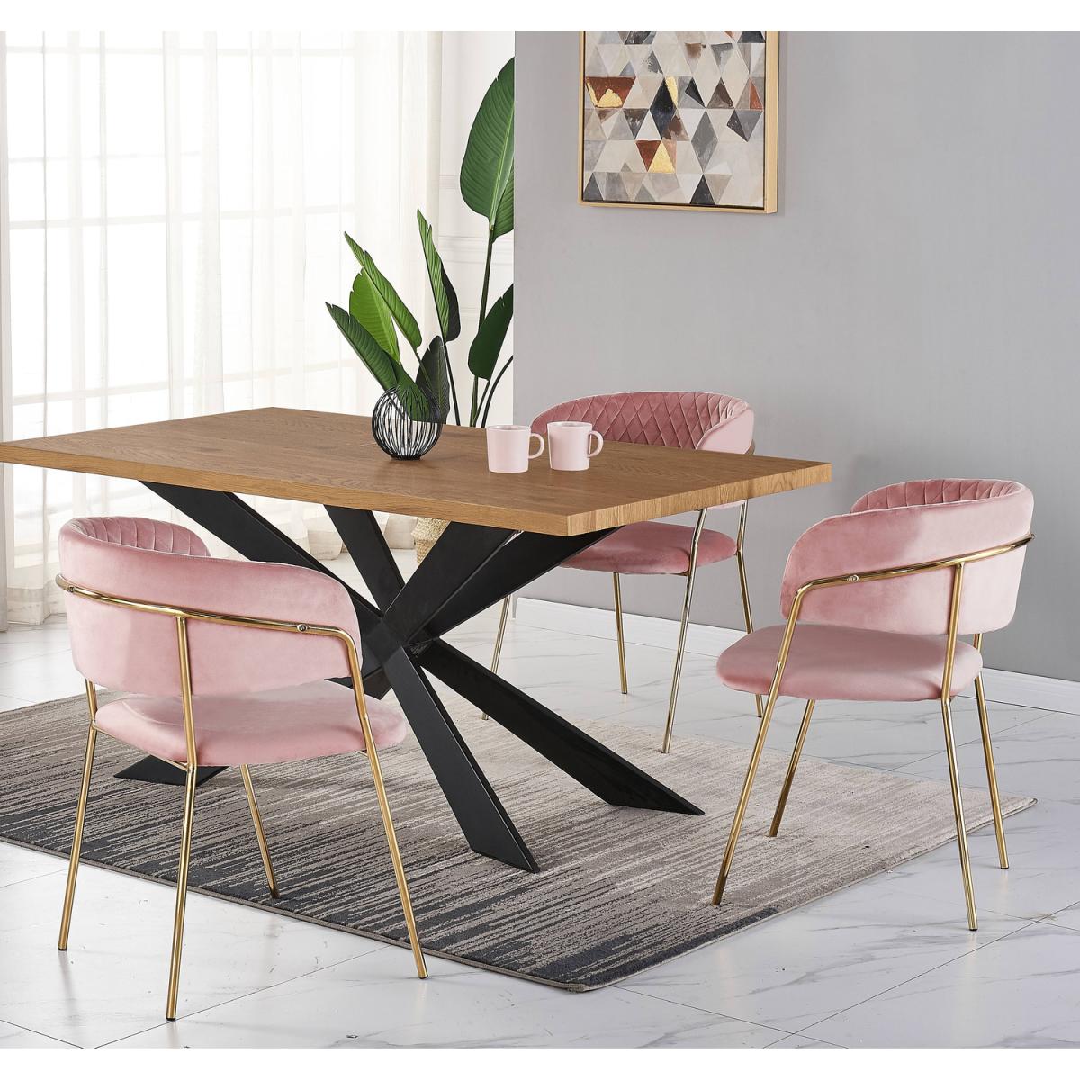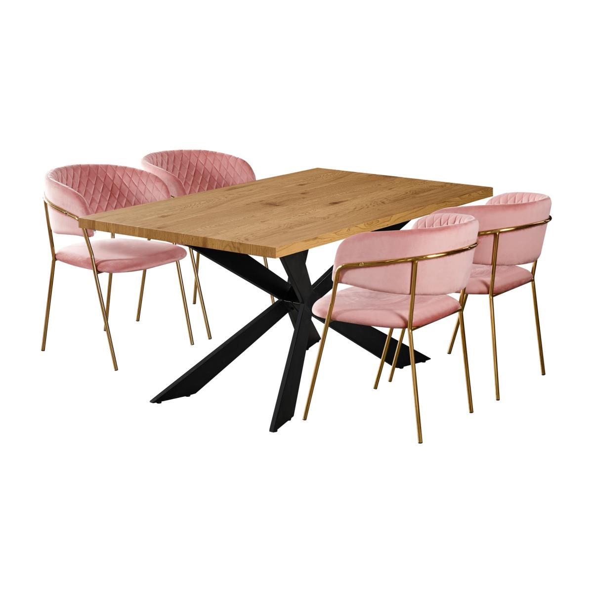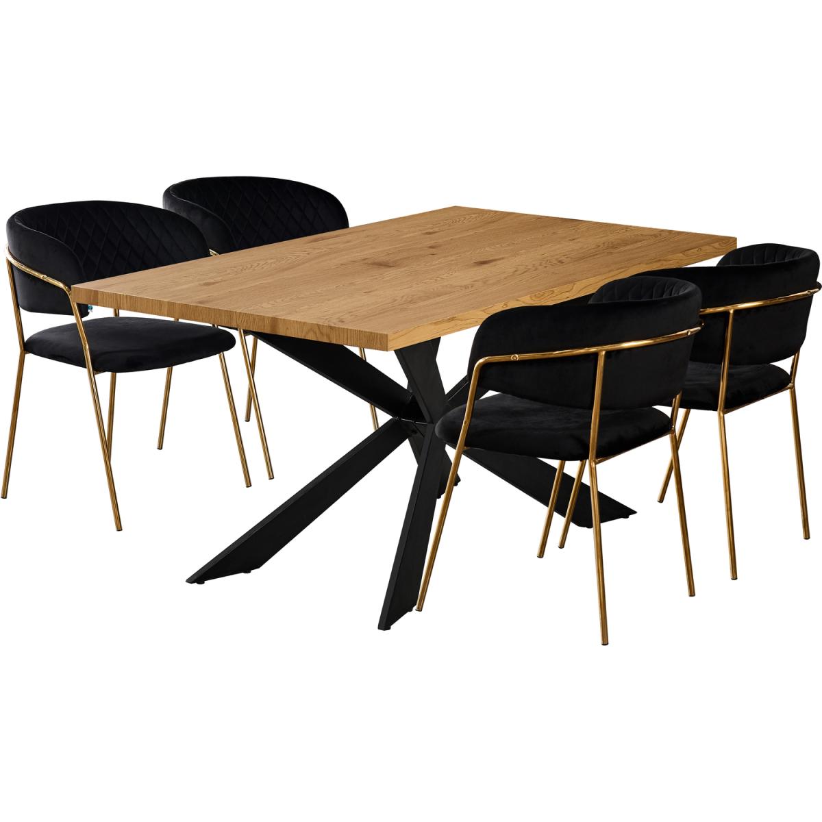 We are offering the dining set of 4 that includes the Duke table featuring a quality finish with a stylish aesthetic and is sure to start a conversation. The Metal powder coated legs are sturdy and built to stand the test of time and with their X-form design make a striking statement. The duke table comes with the Atarah LUX Velvet dining chairs, expertly designed, featuring a gold frame paired with the high-quality velvet with quilted embroidery accentuating the luxury feel and is sure to make a statement in your space. The Atarah chairs have been built from the ground up, with style, class, and high-quality craftsmanship in mind. To ensure this wonderful Velvet finish dining chair meets expectations, we have had to go into high levels of detail to secure this retro look with a modern twist. The dining set is ideal for the dining room, kitchen restaurant, and many more.
