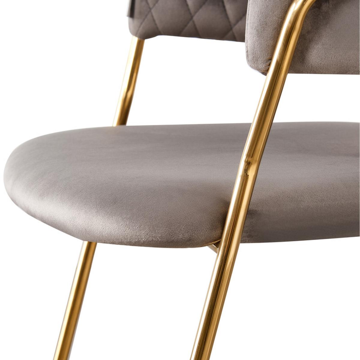 Introducing the Atarah modern dining chair that has been finished with soft velvet and padded back to meet expectations, we have had to go into high levels of detail to secure this retro look with a modern twist. The gold frame paired with the high-quality velvet with quilted embroidery accentuates the luxury feel and is sure to make a statement in your space. The modern Chair can be used as part of your Dining table, side chair for your favorite book reading time, and much more! Anywhere from Cafes, Restaurants, Dessert Shops, dining Rooms, living room, reception area, Hotel or in your bedroom, desk chair in your home office. Featuring a modern upholstered curved back and a well-padded seat, this dining chair is so ergonomic and provides your low back and spine enough support for long-term relaxation. This dining chair is pretty stable and long-lasting due to its sturdy and strong metal legs. Hence, the entire frame of the chair is also in the same luxurious and prestigious golden tone.
