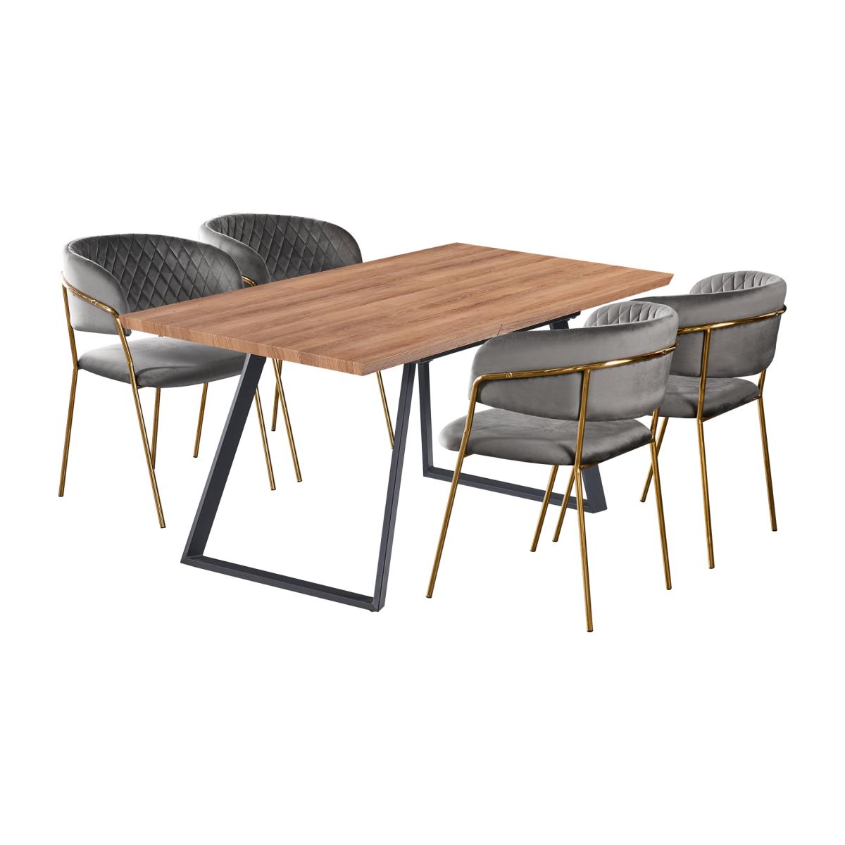 We are introducing the Atarah Toga dining set of 4 including the Toga Dining table that is extendable from 140 cm to 180 cm long giving you that extra space when you need it. Perfect whether it is a Traditional Dining set look or a Modern Dining Set look you are after. The table is supported by metal legs that provide not just sturdy support but a stunning and its unique design that will get your guests talking. Comes with the Atarah LUX Velvet dining chairs, expertly designed, featuring a gold frame paired with the high-quality velvet with quilted embroidery accentuating the luxury feel and is sure to make a statement in your space. The Atarah chairs have been built from the ground up, with style, class, and high-quality craftsmanship in mind. To ensure this wonderful Velvet finish dining chair meets expectations, we have had to go into high levels of detail to secure this retro look with a modern twist. The dining set is ideal for the dining room, kitchen restaurant, and many more.