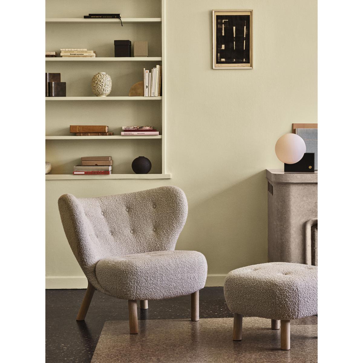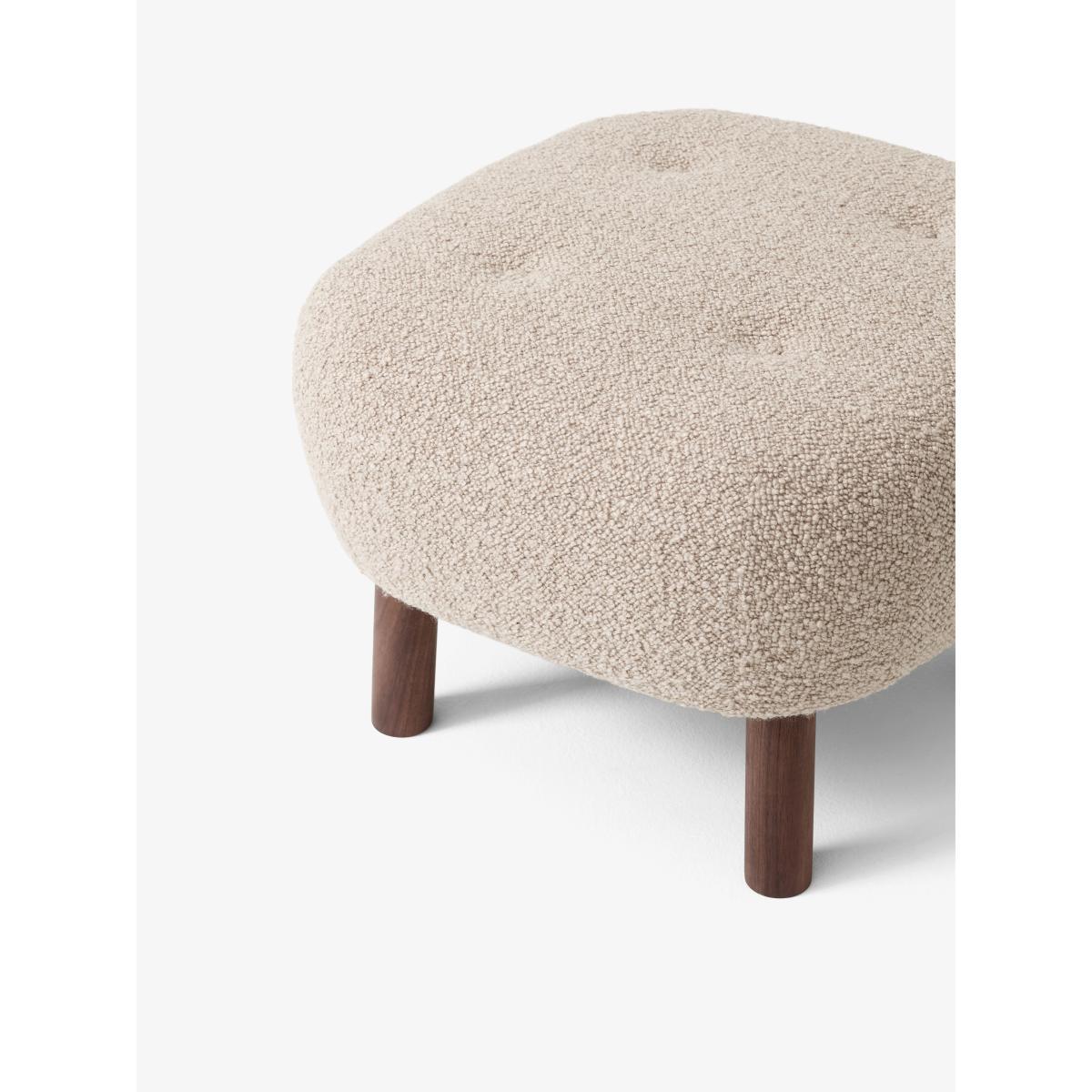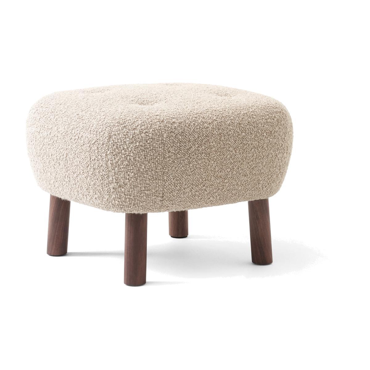 This pouffe / footrest is the perfect companion to the Little Petra armchair by &tradition. Plump and inviting, it features four round solid wooden legs. It brings organic warmth to any interior. It is covered with a beautiful looped wool fabric. Karakorum is a wool and viscose bouclé fabric, which is inspired by the wonderful astrakhan furs, with a comfortable and thick velvety feel.