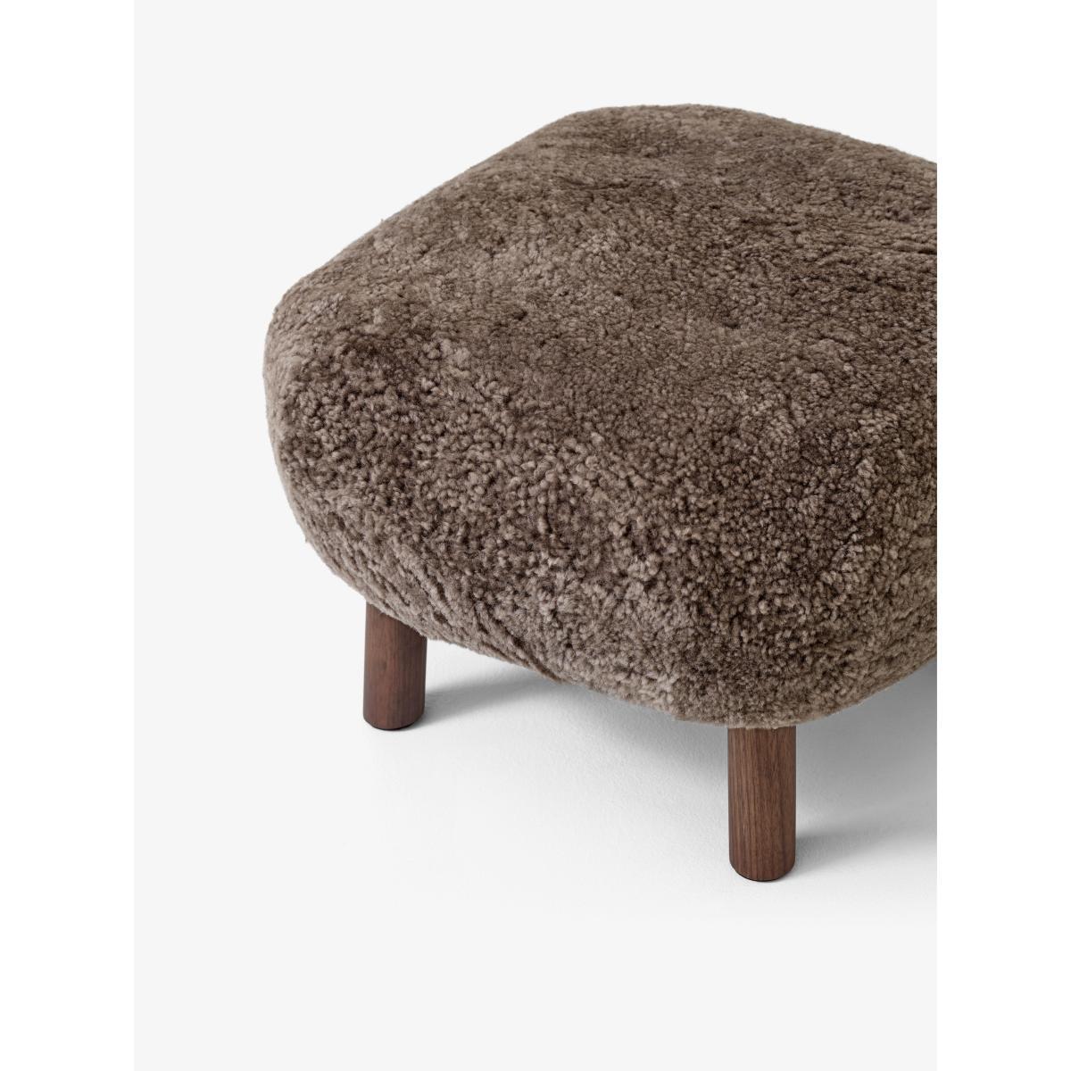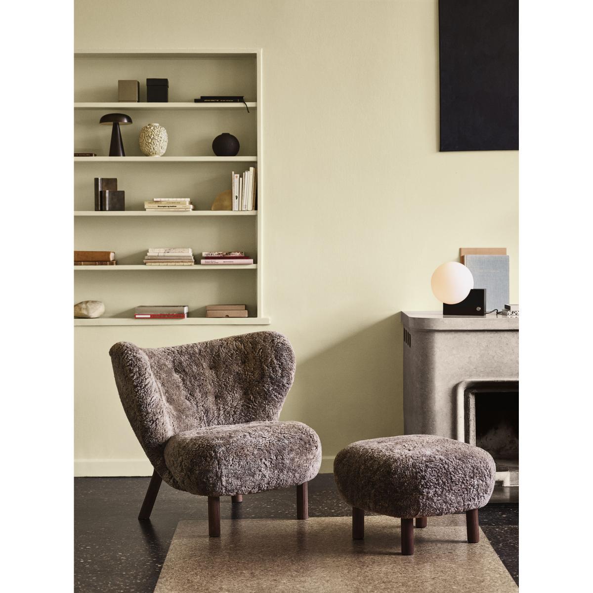 This pouffe / footrest is the perfect companion to the Little Petra armchair by &tradition. Plump and inviting, it features four round solid wooden legs. It’s covered with beautiful real sheepskin. This thick, soft, fluffy fur lends organic warmth to any interior.