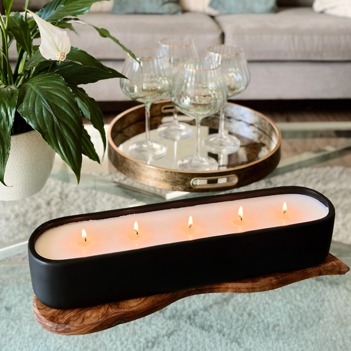 The black candle is a versatile piece that works well in modern and contemporary interiors, especially those with monochrome or minimalist schemes. Its sleek, matte finish adds a touch of sophistication, making it ideal for coffee tables, sideboards, or open shelving where it can be a subtle statement. I love pairing it with warm-toned accessories or metallic accents to create a balanced look. Practical styling tips include placing it alongside plants or candles of varying heights to add visual interest, or using it in combination with other candles to enhance ambient lighting during evening gatherings. Its bold design ensures it doesn't get lost in the decor, while its colour keeps the overall scheme grounded.